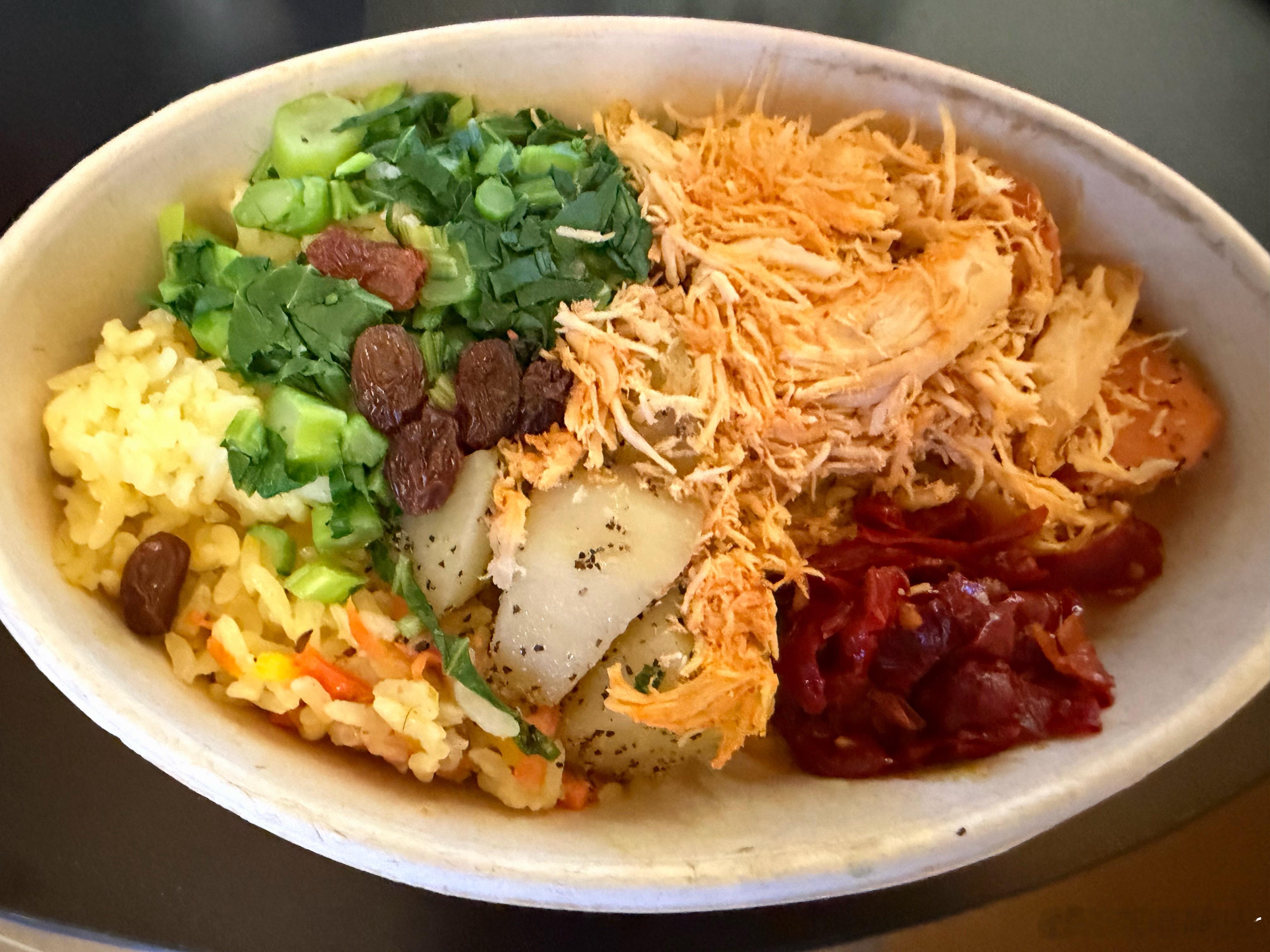 今天吃七鲜超市的辣皮子鸡丝手抓饭这属于是新疆菜系吧?微波炉热一下嘎嘎香