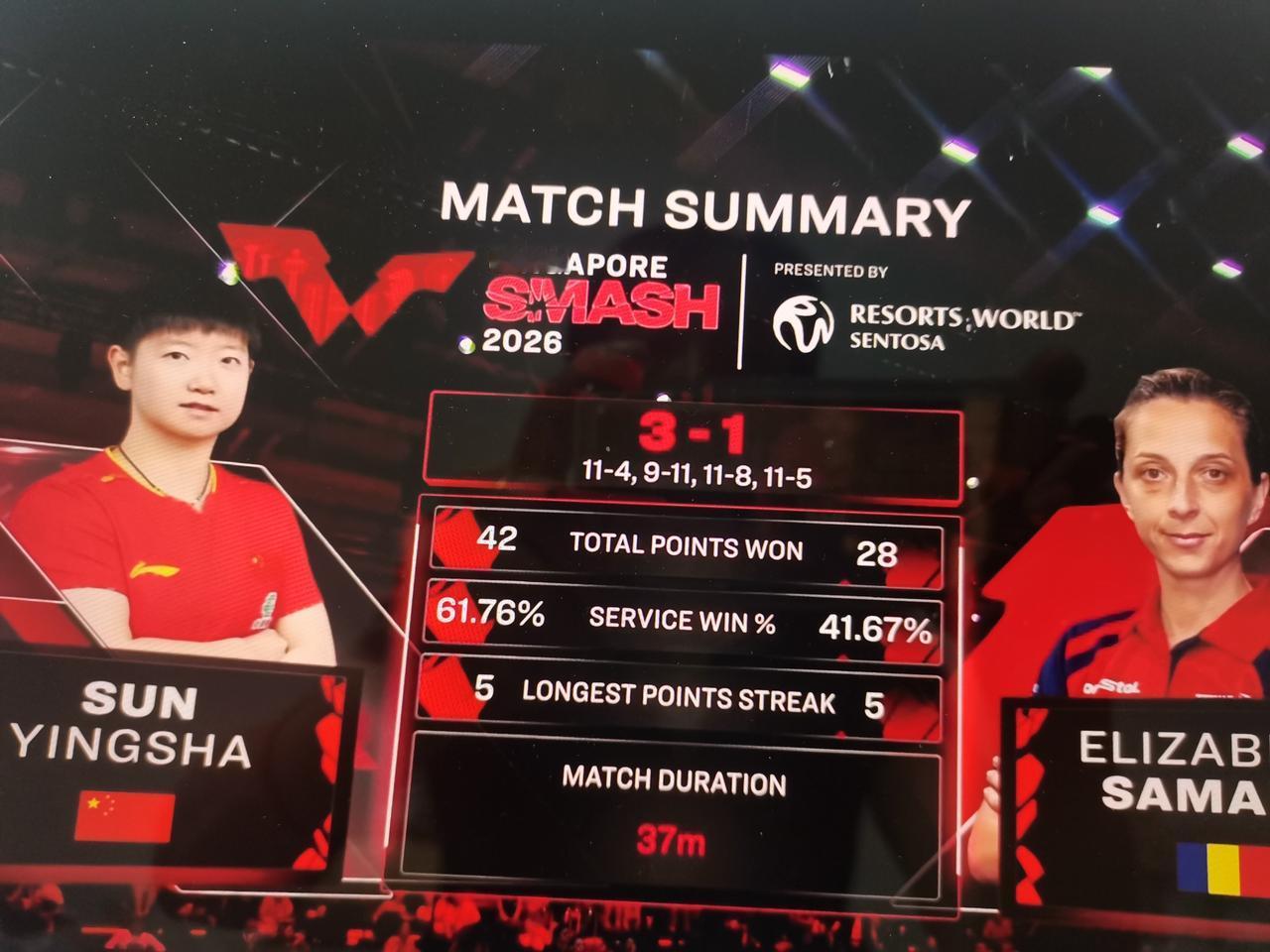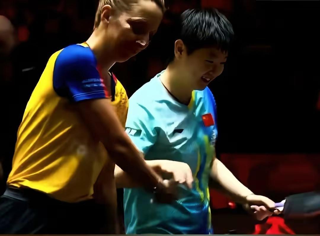 今天是热心对手孙颖莎 面对裁判的误判,孙颖莎善意提醒对手萨马拉发起鹰眼挑战,新加坡大满贯,女单第二轮孙颖莎对阵罗马尼亚老将萨马拉,前两局打成1:1平,第三局萨马拉的发球轮,裁判直接判罚2:0孙颖莎领先,裁判判罚的理由是发球的角度。 面对裁判的误判,孙颖莎连说带比划问萨马拉“不需要发起鹰眼挑战吗?”经过莎莎的善意提醒,萨马拉发起鹰眼挑战,挑战结果20.12小于30,发球没有违规。 今天的这一场比赛,罗马尼亚老将萨马拉状态神勇,莎莎赛后说萨马拉打球,前三板很快,相持球又很慢,莎莎很不习惯萨马拉的发球节奏,所以容易连续丢分,即使自己打得很不舒服,但是面对裁判的误判,莎莎依然表现得非常热心,不是自己的分一分也不想要,赢就要赢得坦坦荡荡,难怪萨马拉即使输了比赛,依然和莎莎开心拉手。