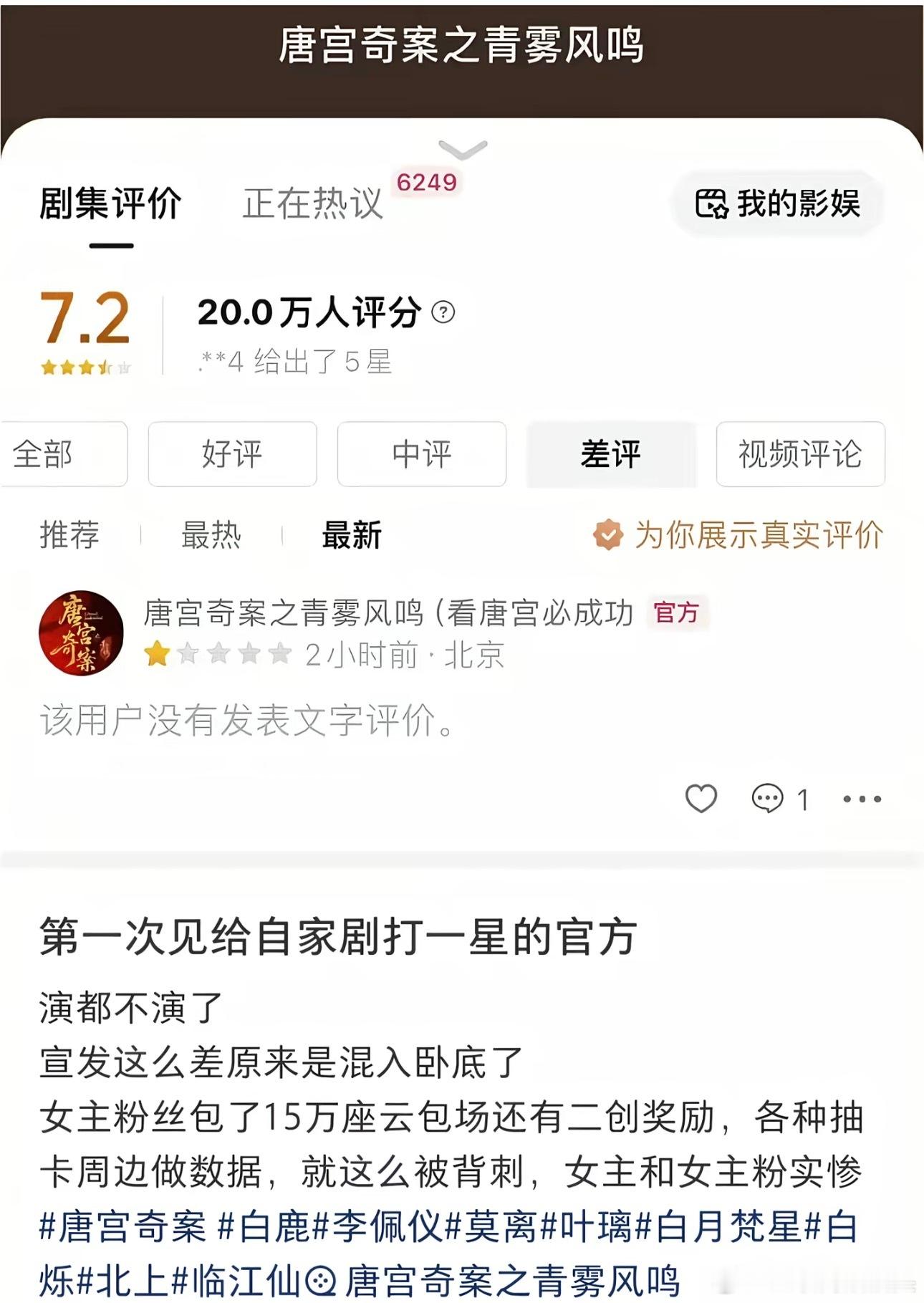 白鹿唐宫扑到这地步吗?官方都打一🌟了