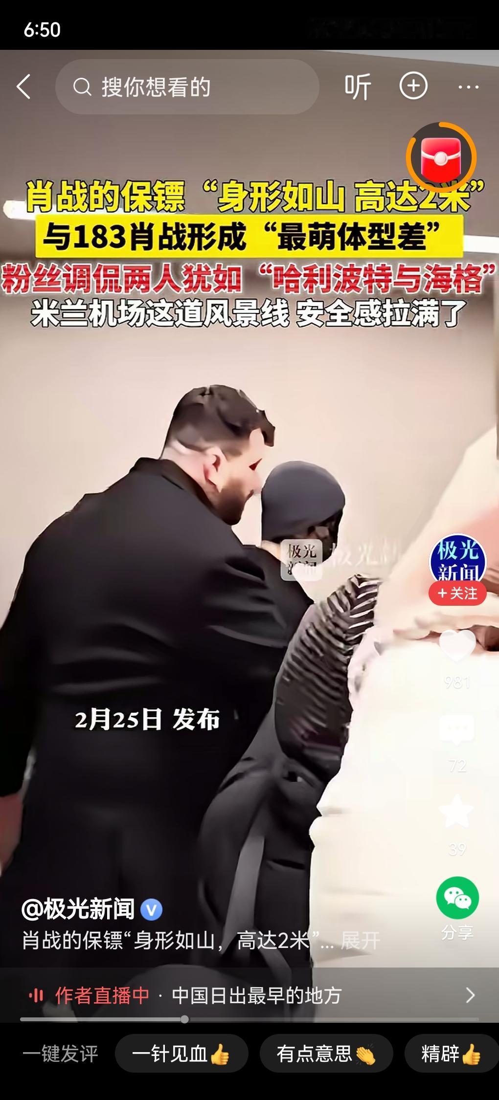 2米多高身材魁梧的保安站在你身边。你是不是觉得很安全呢。 这肖战在参加米兰时装周期间,这品牌方给肖战配的安保人员就是如此的魁梧大汉,身高2米体型健硕,站在肖战的面前,把肖战1.83的身高显得个子好小好矮, 毕竟是人外国外,这明星的安全向来都是重中之重,加上肖战的影响力并不低,在国外仍然是有不少的粉丝, 此次,肖战米兰时装周,现身黑衣黑帽黑口罩,在人群中依旧是精彩夺目。肖战海外生图 肖战巨星影响力