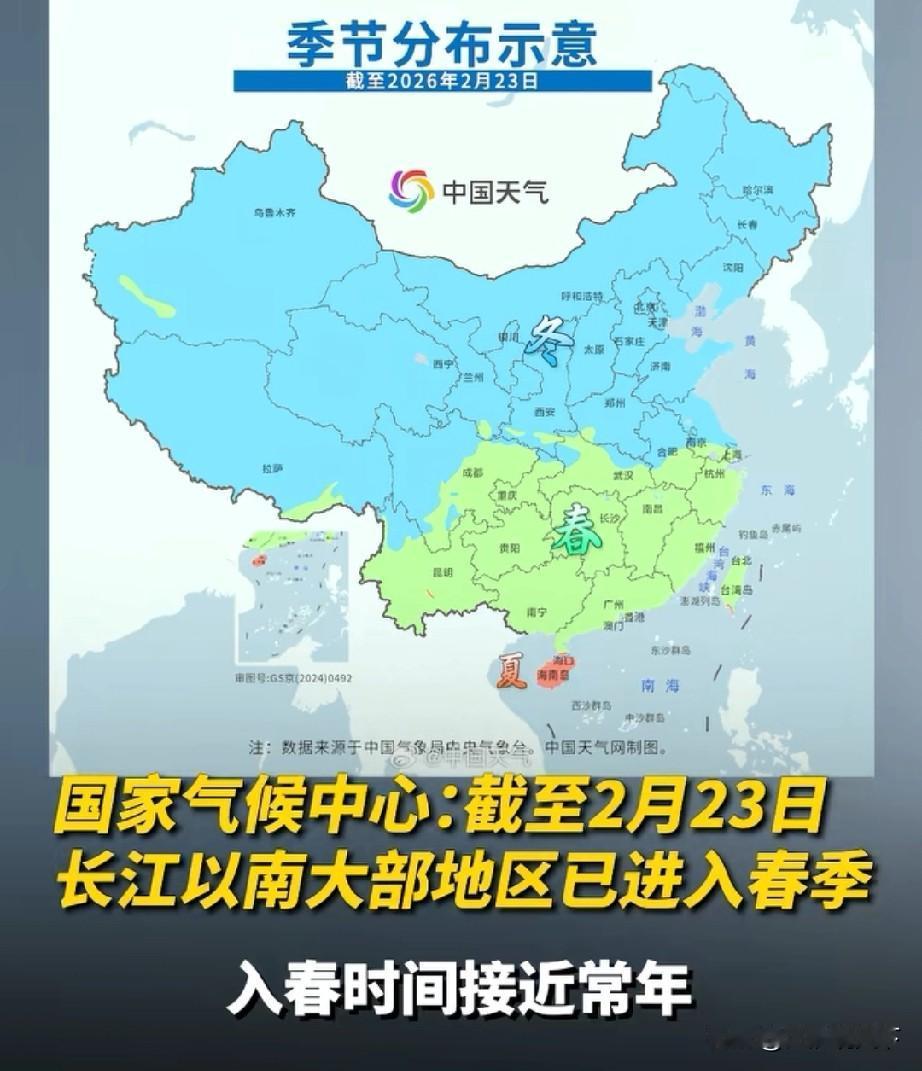 苏皖两省,北部是冬季,南部是春季,非常奇特的地理现象 对于苏皖两省的网友们来说,说江苏和安徽的事,不能整体而论,因为不客观,苏南苏北,皖南皖北都不一样,必须分开说清楚。 作为国家级媒体,央视在报道中国入春地区时候,同样需要对地图做出切割,2月23号,中国长江以南大部分地区进入春季,而苏皖两省北部地区,还是没有进入春天,依然是冬季。 央视地图给出切割线,以安徽合肥,江苏南京为坐标,两市往南区域,靠近长江部分进入春天,两市往北区域,还是属于冬季。 地图上看,安徽入春区域比江苏省还多。 一省分两季,在中国国内,只有苏皖两省,才会出现这种奇特现象。苏皖区域 苏皖平原 皖春三月 春风绿苏北 全国文旅晒春图 苏南苏北风景 三月的安徽