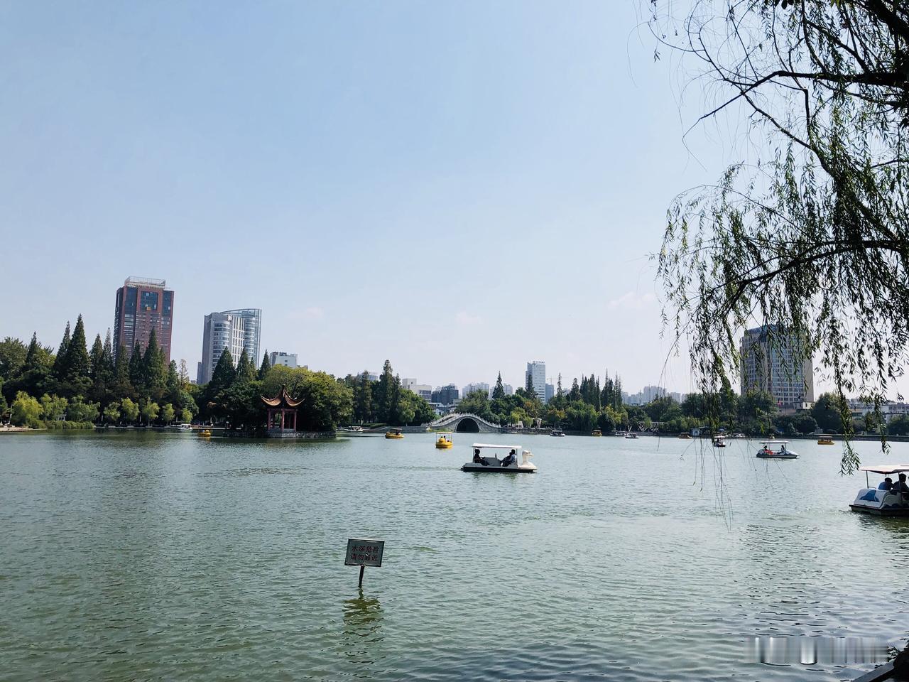 芜湖镜湖公园地处市区核心,毗邻中山路步行街、鸠兹广场,北倚赭山。南宋张孝祥捐田百亩汇成此湖,古称陶塘,因水清如镜得名,“镜湖细柳”是古芜湖八景之首。 景区由大小镜湖(230亩水面)与湖滨绿地构成,总面积22.5万平方米;步月桥连接东西两湖,烟雨墩上有迎宾阁、阿英藏书室等徽派建筑,曲桥、水榭、回廊错落其间。 公园全天免费开放,春日柳丝垂岸,夏日荷花满塘,是市民休闲、游客访古赏景的绝佳去处。芜湖市风景区 镜湖胜境 芜湖市镜湖 镜湖旅游