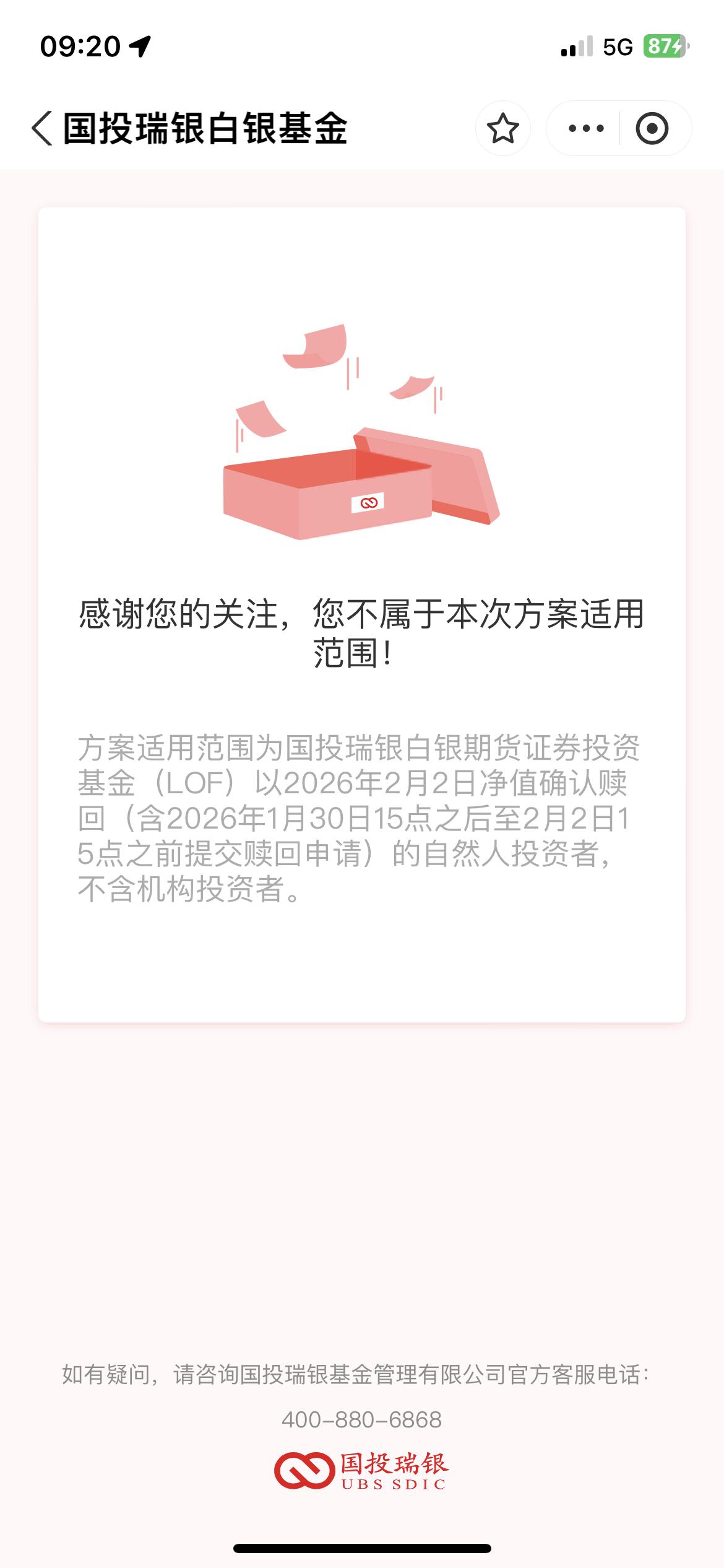 国投瑞银白银基金和解金申领指南:符合条件的快去查! 最近国投瑞银白银基金的和解方案出来了,不少朋友都在问怎么领钱,我把官方公开的信息整理成大白话,大家对照自查就行,每一条都有据可查,放心看👇 一、先搞清楚:谁能领?(官方适用范围) 根据国投瑞银基金官方公告,本次和解方案的适用范围是: • 产品:国投瑞银白银期货证券投资基金(LOF) • 投资者:自然人投资者(不含机构投资者) • 赎回时间:以2026年2月2日净值确认赎回(含2026年1月30日15点之后至2月2日15点之前提交赎回申请) 我自己去查了,显示“不属于本次方案适用范围”,白激动一场,大家先对照自己的赎回时间,别白跑。 二、能领多少钱?(阶梯赔付规则,公开可查) 和解金是按“影响金额”分阶梯赔付的,我举个例子(以影响金额2093.36元为例): • 0-1000元的部分:100%赔付 → 1000元 • 1000(含)-2000元的部分:35%赔付 → 350元 • 2000(含)-3000元的部分:25%赔付 → 23.34元 合计:1373.34元 每个人的影响金额不同,最终金额以自己账户显示为准,这个阶梯规则是公开的,大家可以自己算。 三、怎么查自己能不能领?(一步到位) 1. 打开支付宝,搜“国投瑞银白银基金”小程序 2. 进入后找到“和解金申领”相关入口 3. 按提示操作,系统会自动判断你是否在适用范围内,不符合会直接提示“不属于本次方案适用范围” 四、重要提醒 • 所有信息都来自国投瑞银基金官方公告,没有任何夸大或虚假内容 • 符合条件的朋友尽快去查,能挽回一点是一点 领到的朋友可以在评论区说一声,没领到的也别灰心,投资路上避坑比赚钱更重要~ 国投瑞银白银基金 基金和解 理财避坑 投资干货 要不要我帮你把这篇微头条再精简成300字以内的短版本,更适合今日头条的信息流推荐?白银基金投资