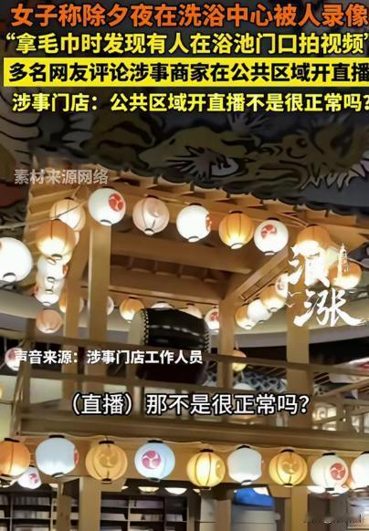 上海,一女子除夕夜,去洗浴中心放松,她刚从浴池出来,去拿毛巾时,被人提醒,才发现有个女士在浴池门口直播,把她都给录进去了,女子火冒三丈,这还有隐私可言吗?她愤怒报了警,可洗浴中心却觉得没啥不妥,认为女子矫情,这不是很正常吗? 刘女士(化名)终于结束了一周的加班,拖着疲惫的身体来到市中心一家口碑不错的洗浴中心。她心里想着:今晚就让我彻底放松,泡个热水澡,洗掉一年的疲惫。 刚换好浴衣,走进热气腾腾的浴池,水雾缭绕,伴随着轻音乐,刘女士闭上眼睛,觉得整个人都像融化在温暖的水流里。她沉浸其中,仿佛世界只剩下水声和自己的呼吸。 然而,当她洗完澡,打算去拿毛巾时,一旁传来低声提醒:“小姐,你好像被拍进直播了。” 刘女士愣住了,顺着声音看去,浴池门口站着一名年轻女子,手里举着手机,对着镜头介绍洗浴环境,镜头不经意地扫过她刚从水里出来的身影。 “什么?我被拍了?”刘女士火冒三丈,她捂着自己还湿漉漉的身体冲过去:“你在干什么?立刻停下来!” 那名女子愣了一下,手机依旧摇晃着,笑着说:“小姐姐,我只是直播介绍环境而已,你没事吧?” 刘女士气得脸都红了:“我没事?你把我录进直播里,完全没有经过我同意!我来这里是为了享受服务的,不是给你做广告的!” 她立即找到洗浴中心的工作人员理论。工作人员先是有些尴尬,但随即露出解释的口吻:“这位小姐姐是我们请来的做宣传的,现在生意不好做,大家都在直播推广,希望您能理解。” “理解?”刘女士几乎要哭出来,“我付了钱,是消费者,不是你们的宣传素材!你们未经允许,把我洗浴的实况公之于众,这侵犯了我的隐私!” 工作人员却轻描淡写:“直播很正常啊,现在年轻人都喜欢看,您不要太敏感了。” 刘女士气得差点跺脚:“你们这是拿顾客的身体当广告,顾客就是随便可用的吗?这不是敏感,这叫侵犯!” 她愤怒地掏出手机,拨打了报警电话。与此同时,她把这件事拍成视频,上传到社交媒体。没多久,网友们炸开了锅。评论区里铺天盖地都是对她的声援: “这洗浴中心也太不尊重顾客了吧?人家是来放松的,你这是让人家变成直播模特!” “消费者的隐私是法律保障的,这完全是侵犯肖像权啊!” “现在都成了广告战场,谁还敢好好洗个澡啊!” 也有一部分网友持不同观点:“大家别太敏感了,现在直播太普遍了,商家也不容易,大家理解一下。” “你付钱享受服务没问题,但宣传也是商业手段啊,有些人就是爱起争执。” 法律界人士也加入讨论,明确指出:洗浴中心属于半封闭的私密场所,顾客有合理的隐私期待。 未经同意拍摄并直播他人消费行为,可能涉及侵犯肖像权或隐私权。即便在公共场所,也要尊重个人意愿,更何况洗浴中心有着较强的私密属性。 刘女士的视频迅速在网上刷屏,大家纷纷转发并留言分享类似经历。一位网友感慨:“我去咖啡店,店员直播把我拍进去了,当场就要求删除,不然我也报警。” 另一位网友写道:“现代社会商业推广太强势,但基本的尊重不能丢。” 这件事情迅速成为讨论热点,不仅是消费者与商家的冲突,也引发了社会对隐私权与直播经济的深刻反思: 当商业宣传遇上隐私权,界限在哪里?消费者到底该如何保护自己?商家又该如何合法合规地推广?