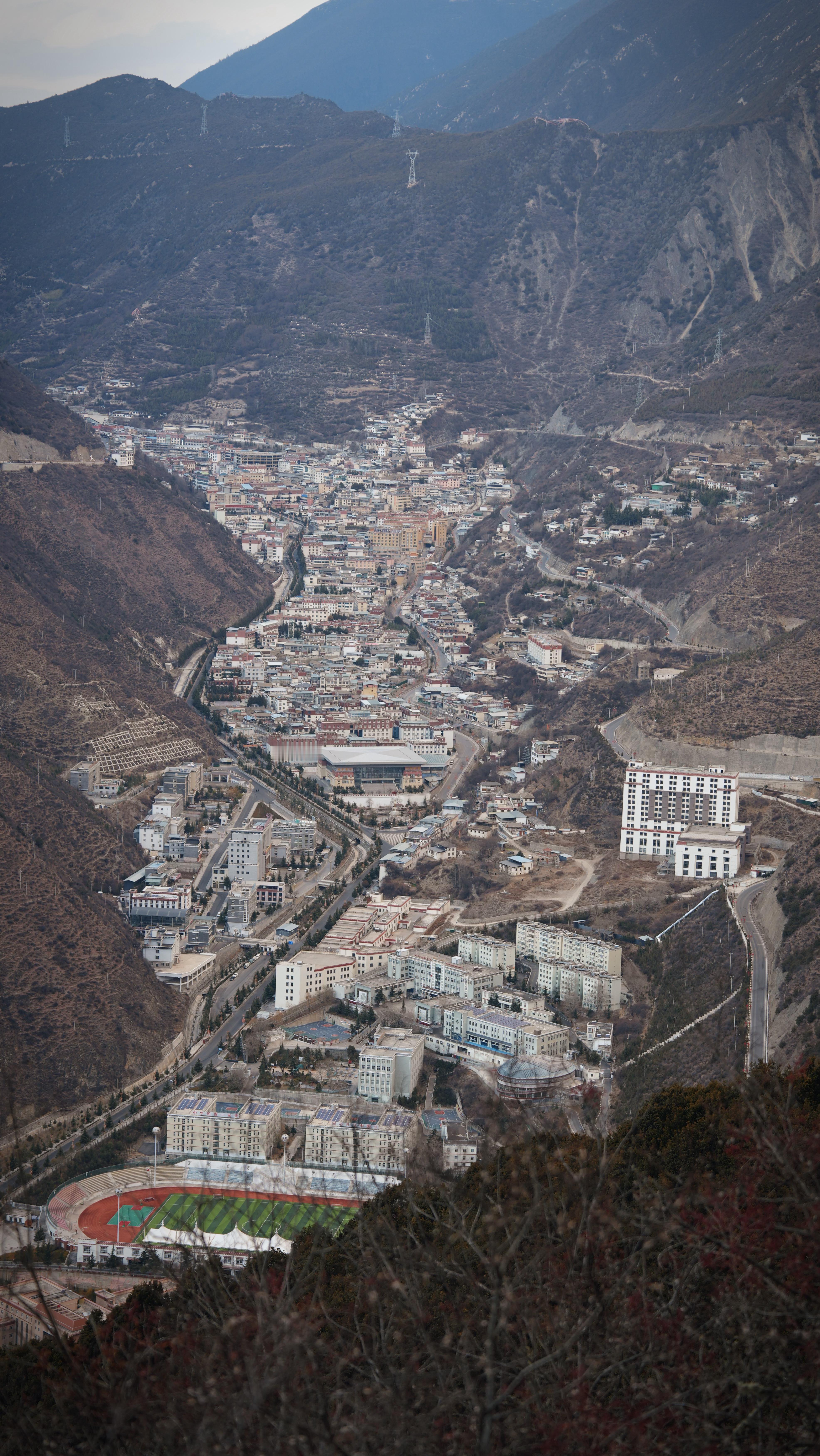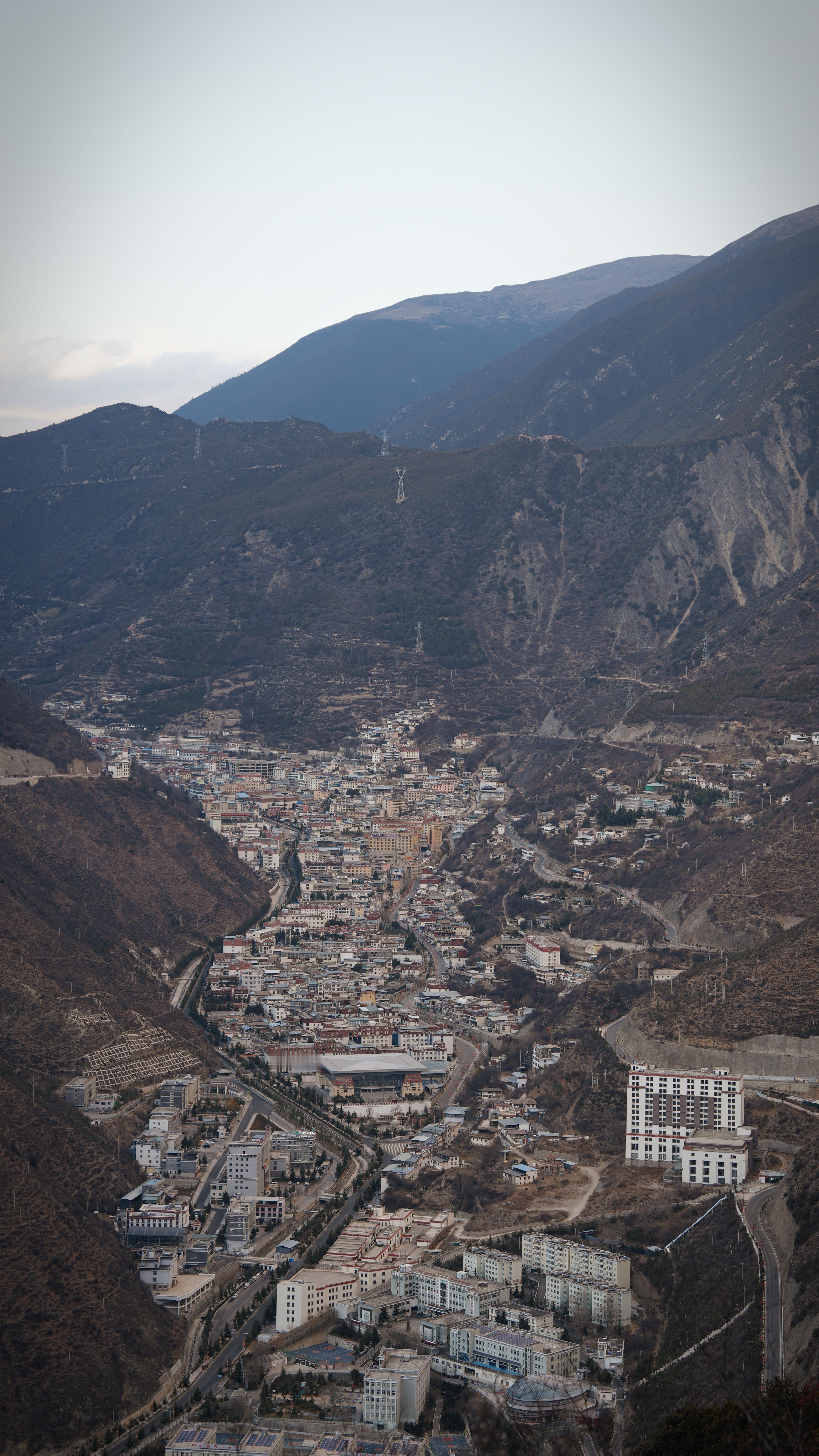 德钦县城,梅里雪山脚下,准备搬迁,大工程,整座县城搬走,不知道世代居住在这儿的人,心里怎么想,我拍了几张全景