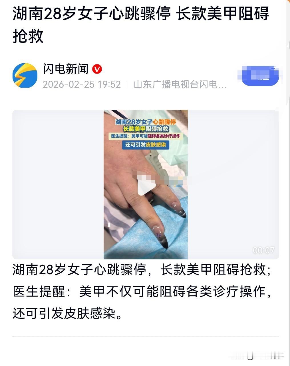 现在美甲的生意好的不得了啊,每次我路过一家美甲店都是好多人呢!特别是节假日就更多了。 而且有一个地方,几家美甲店开在一起,每一次去都有生意做,你说这市场多大? 曾经在网上看到这么一个事,表面上美甲那么好看,其实有的自身的指甲已经在里面坏掉了。 其实这真的是得不偿失。 近日,湖南一28岁女子心跳骤停,医生抢救时却遇到了阻碍,原来是做了长款美甲,指脉氧仪无法探测到她的真实血氧数值。 医生提醒:美甲不仅可能阻碍各类诊疗操作,还可引发皮肤感染。 所以说还是多想想后果吧。