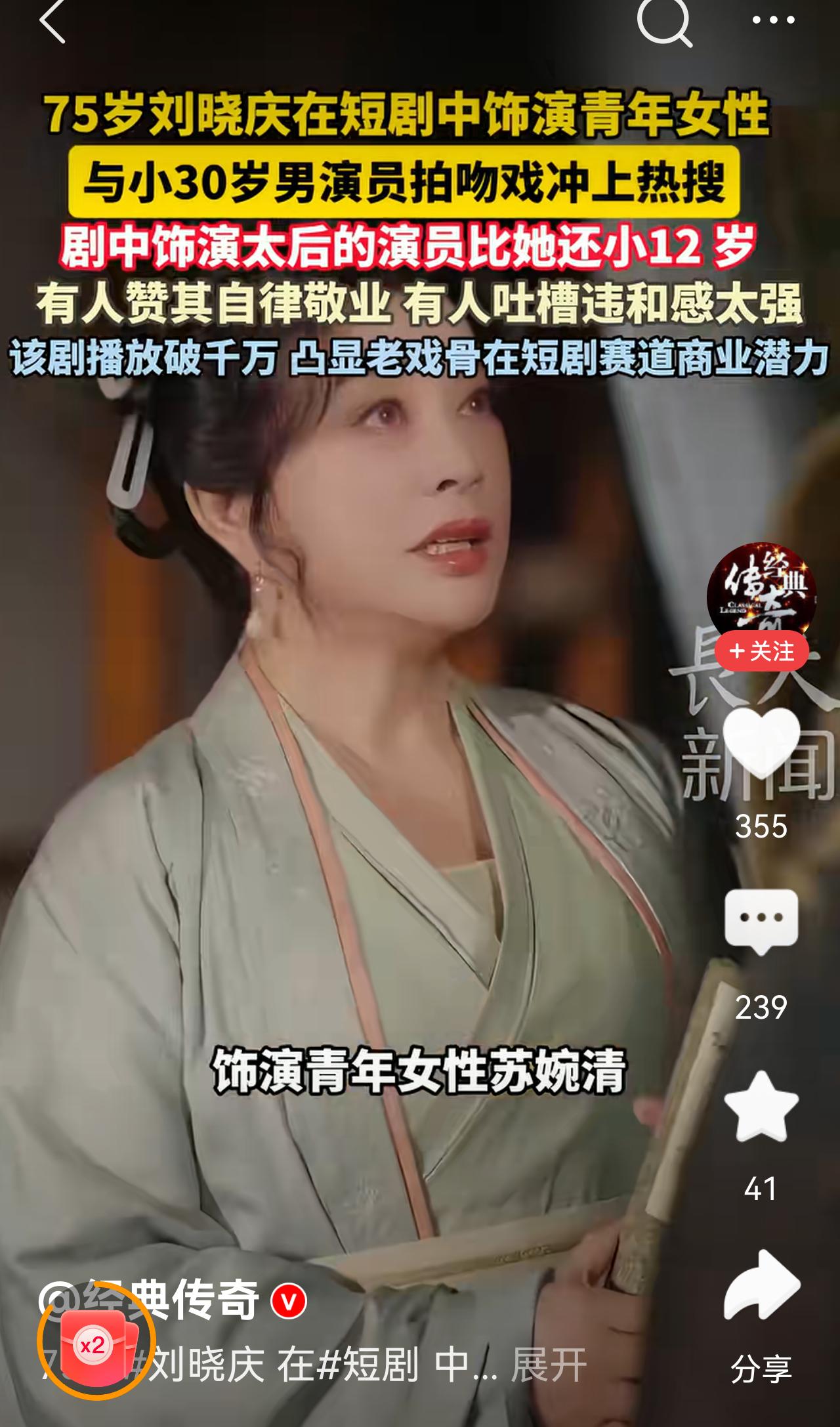 刘晓庆短剧吻戏我的天哪,刘晓庆都已经70多岁了,都可以当男演员的奶奶了吧,这男