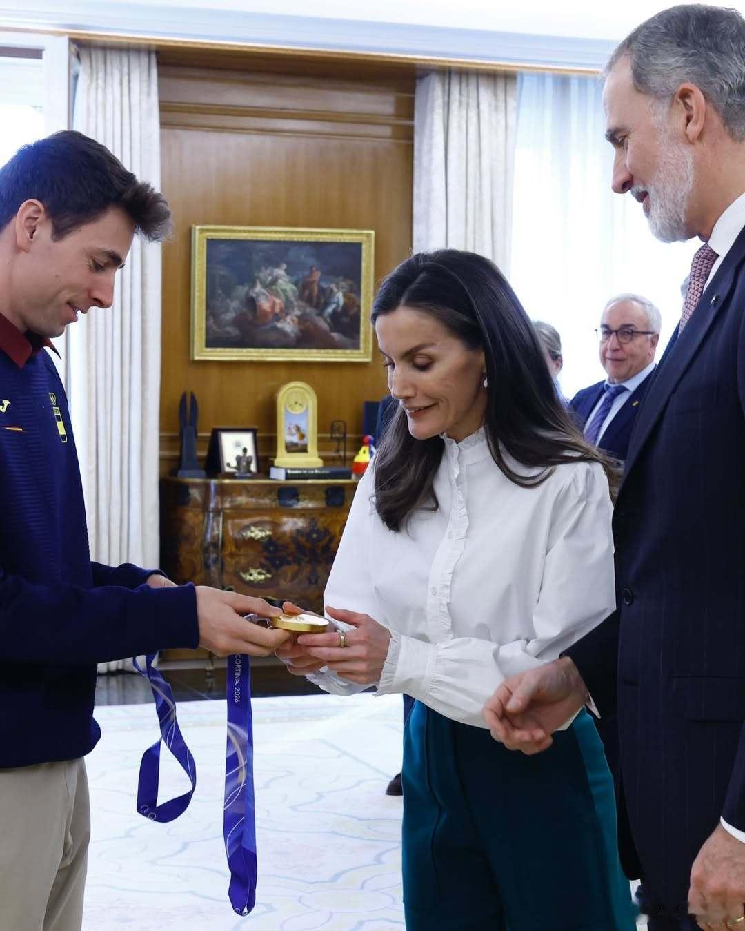 西班牙王室 🇪🇸2月25日,费利佩国王和莱蒂齐亚王后在萨苏埃拉宫接待参加2026米兰冬奥会的奥运健儿们。西班牙队本次获得1枚金牌🥇和2枚铜牌🥉,滑雪登山男子短距离🥇奥里奥尔·卡多纳,滑雪登山女子短距离🥉安娜·阿隆索,滑雪登山男女混合接力奥里奥尔·卡多纳和安娜·阿隆索🥉。世界各国王室2026年米兰科尔蒂纳冬奥会