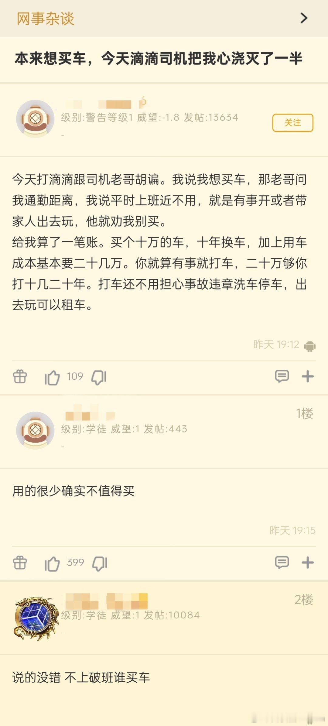 🔻买车好还是打车好?🔻看使用频率和家庭需求吧。
