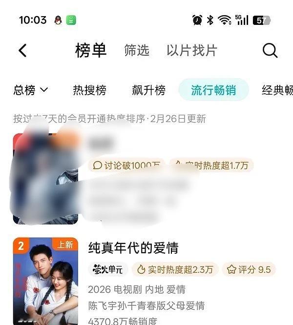 陈飞宇纯真年代的爱情周榜第二了,一天比一天高🔥