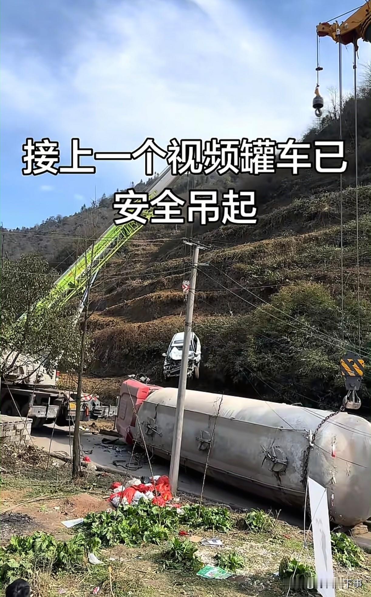 这黑车司机能逃过一劫也算命大了!云南昭通,一辆槽罐车在上坡时因刹车失灵发生后溜,