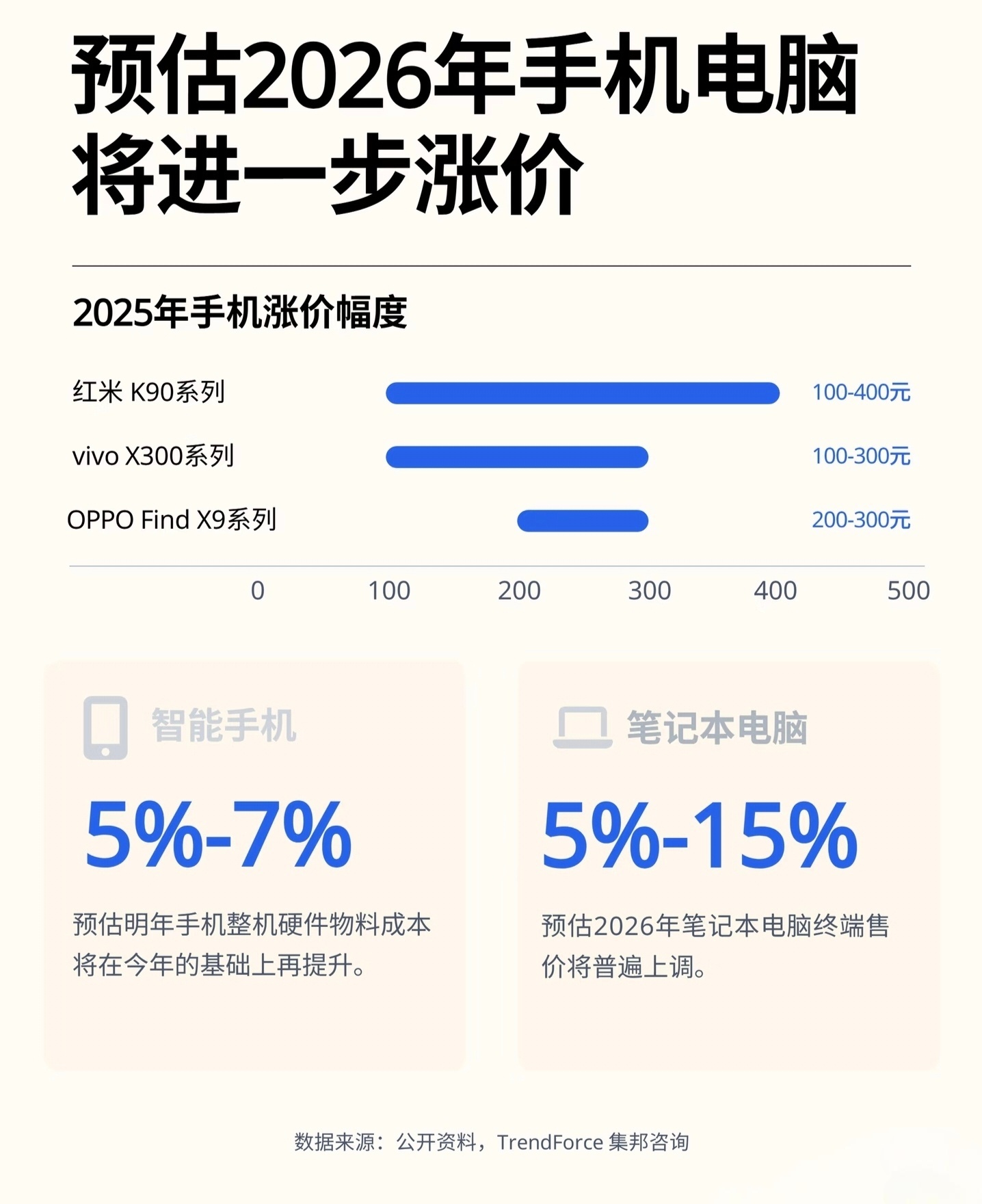 核心原因就俩,一个是存储芯片被 AI 服务器抢产能,近三月涨了300%,1TB 闪存从 200多飙到600多,成本占比从10%冲到 40%;还有就是2nm芯片代工费涨50%,屏幕、金属这些原材料也跟着涨,厂商不涨价就得亏