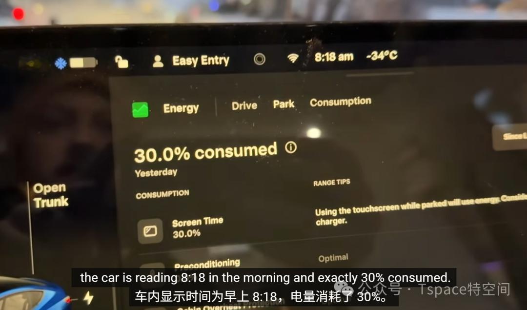 零下36°C的极限挑战!Model 3满电状态依然可以持续供暖超过30小时
