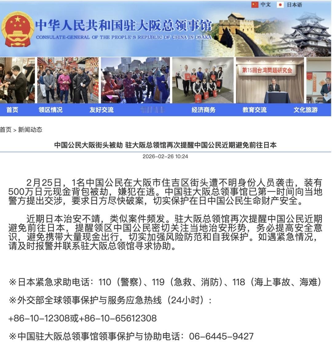 短短一个月内,东京抢了4.2亿日元,大阪街头暴力抢劫,目标高度集中在中国游客,领馆一再提醒 “近期避免前往”,但就是有人不听,非要冒死前去送钱,这种情况估计钱是只能是有去无回,给你留条命都是对方手下留情!