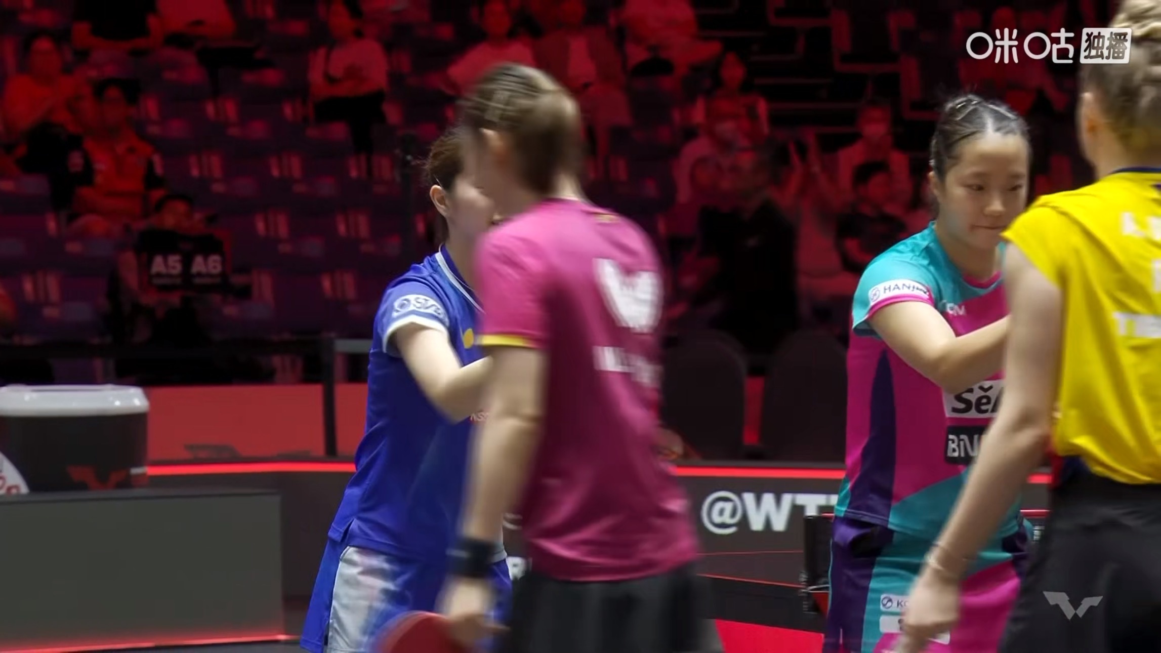 申裕斌🇰🇷/长崎美柚🇯🇵3比0肖瑶茜🇪🇸/迪亚科努🇷🇴(11-5,11-6,11-7)晋级WTT新加坡大满贯2026 女双决赛