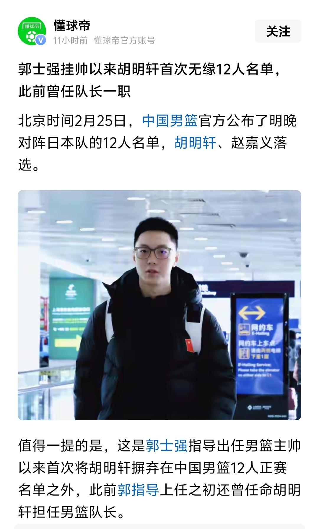 胡明轩、赵嘉义落选最终男篮12人大名单,或许胡明轩落选早就是一些球迷眼里的“众望所归”了,但是替补胡明轩进行的比赛到底能不能有好的发挥,就看今晚的比赛了!