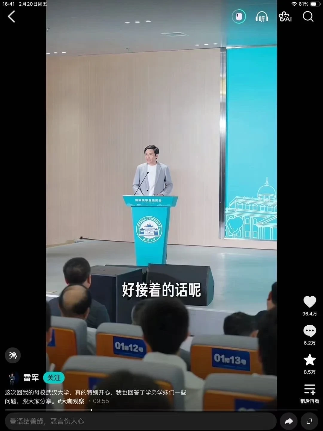 今天上午在小选刷到雷军 回母校 武汉大学的一个演讲视频,发现这段对话蛮适合春节前后重整旗鼓且容易焦虑的大家看到的,小小分享下。