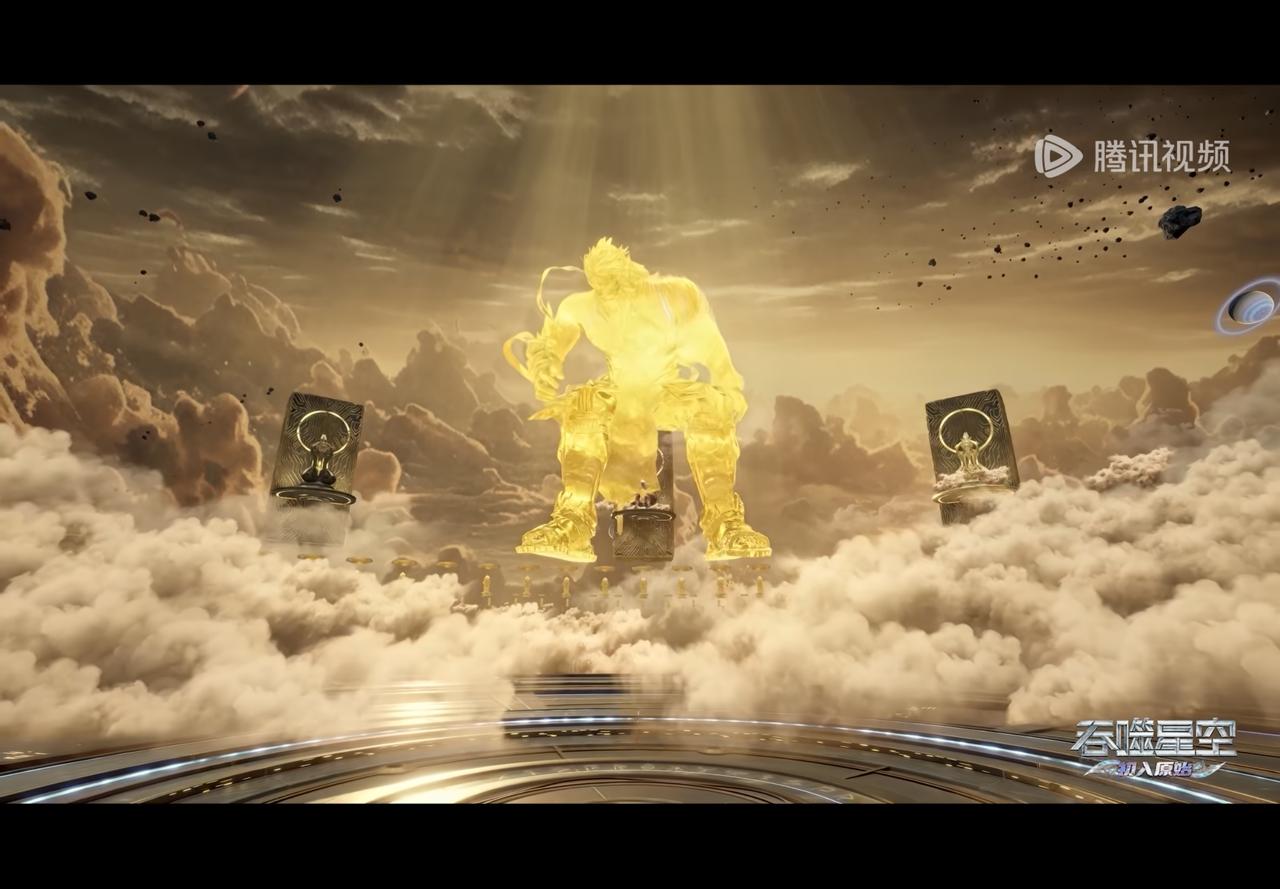 这就是人类 最厉害的人巨斧创始者,身材魁梧,外表似 野人一看就是那种肌肉特别发达,就像程咬金一样,拿着两把斧头。但是这个座位上面还有一个人,为什么是空着? 就是巨斧旁边的那个。聚福创始者,这身高我的天这得有五米多吧有可能还不止。他穿的这身衣服从哪儿来的?这么轻薄,就像古时候那种纱一样 而且身躯就像宇宙中的银河一样,特别漂亮