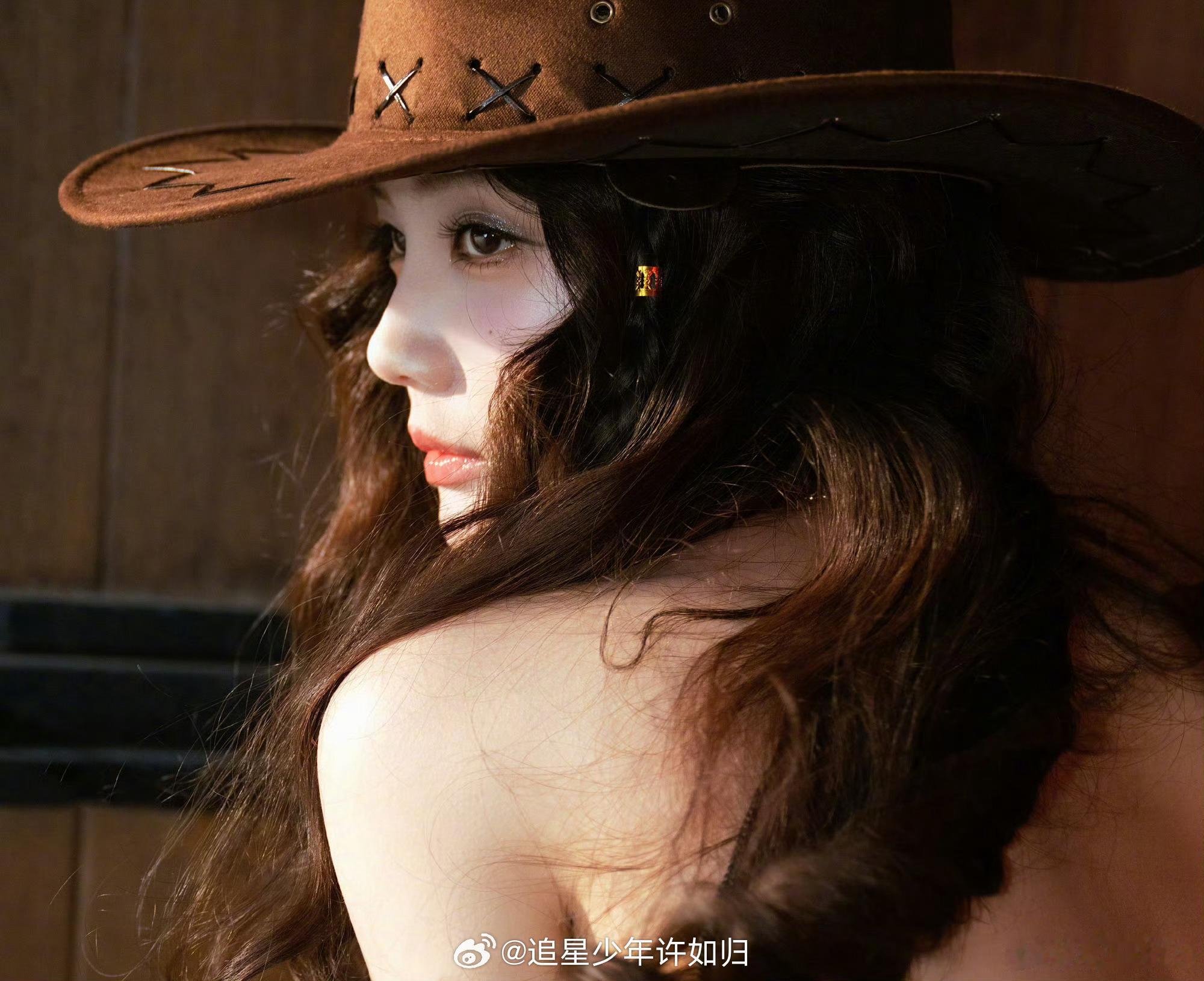 李一桐 牛仔风李一桐和牛仔帽的适配度简直是满分!阳光下的纱质吊带温柔得像画报,帽子一扣瞬间切换成西部片女主。趴在马背上那个姿态,既有野猫的慵懒,又有女骑士的飒爽。