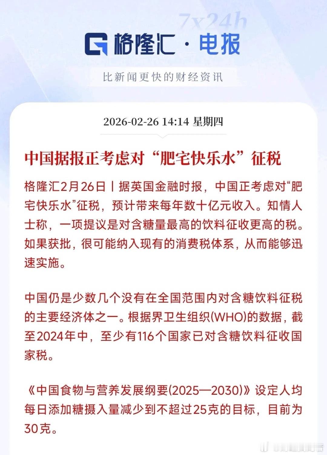 饮料行业迎来重大变革,英媒称饮料可能会征更高的税英媒称中国可能会对饮料行业征收更高的税,而且含糖量越高征收的税率越高。