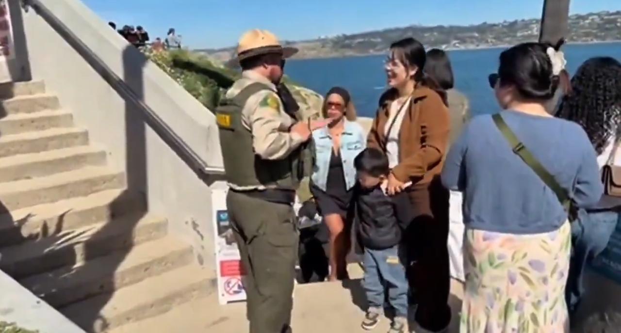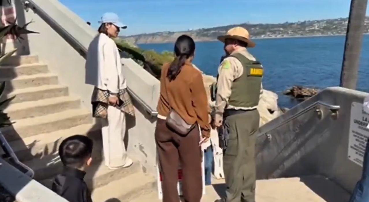 某些人在美国又出名了。 2026年2月22日,在加州圣地亚哥La Jolla Cove(拉霍亚湾),一个来自中国的六口之家,因孩子多次向海狮投掷沙子、石块等物品,被公园巡逻员(park ranger)多次警告无效后,全家被要求离开现场。 视频中能听到巡逻员质问:“在中国,你们也朝动物扔土吗?”("In China, do you throw dirt at the animals, too?") 最终没有开罚单,但这家中国人全家被驱离。此事已经上了福克斯电视新闻。