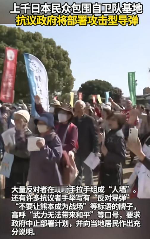 1200名日本人手拉手堵死自卫队基地,喊出的话让全世界都沉默了,2月23日,日本熊本县陆上自卫队健军驻屯地门口,发生了一件让全世界都看在眼里的大事。 当天,足足1200个普通日本人,从白发老人到年轻学生,自发从四面八方赶来。他们没带任何武器,也没搞暴力破坏,只是手挽着手、肩并着肩,硬生生在基地入口处,筑起了一道长长的“人墙”。 现场的空气像被冻住了一样,又闷又沉,每个人的脸上都写满了愤怒和不安,有人高高举着写着“反对导弹”的牌子,在人群里格外扎眼。有人扯着沙哑的嗓子,一遍又一遍地嘶吼着:“别让熊本变成战场!武力带不来和平!”那声音里,有对战争的恐惧,也有对和平的执念,在基地门口久久回荡,听得人心里直发紧。 而这一切,都是因为日本政府要在这个基地里,部署改进型12式反舰导弹。这款导弹由日本三菱重工研制,原本的12式反舰导弹射程只有200公里,而改进型的射程直接提升到1000公里以上,还进行了隐身化改进,具备攻击敌方基地的能力,射程范围能覆盖周边国家的沿海地区。 日本政府早在2025年8月就公布了这份部署计划,明确要在2026年3月底前,先在健军驻屯地和静冈县的富士驻屯地部署,未来两年内,还要把部署范围扩大到全国6处。 健军驻屯地位于熊本市中心,地理位置十分特殊,距离医院只有咫尺之遥,方圆两公里内集中了约20所小学和初中,居住着大量普通民众。日本政府声称,部署这款导弹的目的是“获得威慑力量,降低日本遭受攻击的可能性”,但这种说法根本无法说服当地民众。熊本原子弹幸存者协会会长青木荣直言,政府根本没有考虑过如果导弹遭到攻击会发生什么,一旦出现意外,周边的学校、医院和居民区都会受到严重影响,无数普通家庭将陷入灾难。 更让民众愤怒的是,日本政府在推进部署计划的过程中,完全无视民众的意见,连一场面向公众的信息说明会都不肯召开。熊本县议会在2025年12月就驳回了召开公众信息说明会的申请,代表熊本县第一选区的众议院议员、内阁官房长官木原稔,更是明确表示“没有召开此类说明会的计划”。熊本县政府则态度暧昧,只说“正在要求政府向居民作出解释,但具体方式由他们决定”,全程没有为当地民众争取任何知情权和话语权。 这次抗议活动的组织者,是东海大学名誉教授山下雅彦,他表示,很多民众都对导弹部署感到焦虑和恐惧,大家之所以自发赶来抗议,就是不想让熊本变成潜在的战场,不想让和平的生活被打破。 1200人的声音或许微弱,但他们喊出的“别让熊本变成战场”,却震撼了全世界。这不是一场简单的抗议,而是普通民众对战争的抵制,对和平的坚守。日本政府真的应该认真倾听民众的声音,停止推进导弹部署计划,放弃军事扩张的念头。和平从来都不是靠武力换来的,只有尊重民意、坚守和平,才能让国家真正获得安全,让民众真正过上安稳的生活。