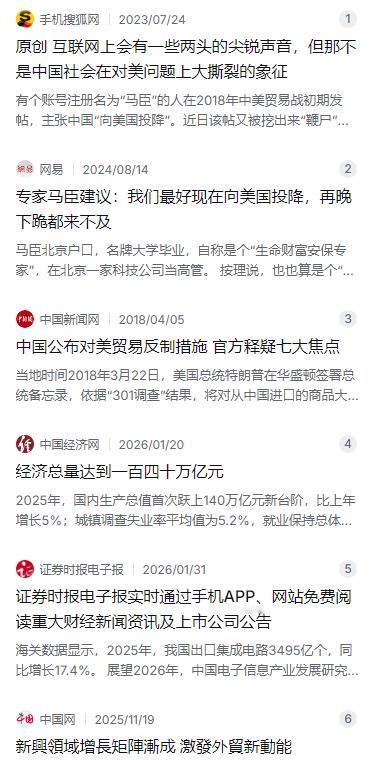 中国现在向美国投降还来得及!再晚就要‘跪着’了,”7年前,中国专家马臣公开宣称中美贸易战中国应向美国投降,此时是最体面的。 麻烦看官老爷们右上角点击一下“关注”,既方便您进行讨论和分享,又能给您带来不一样的参与感,感谢您的支持! 2018年春天,中美贸易战刚拉开帷幕,国内互联网上突然冒出一个叫马臣的“专家”。这位自称“生命财富安保专家”、北京一家科技公司经理的人,发了一篇炸锅的帖子,核心观点就一句话:中国现在向美国投降还来得及,而且这是“最体面的时刻”。他说得有鼻子有眼,什么“现在投降好处多,站着举起双手就行”,什么“将来再投降就得跪着,而且还得跪姿标准,否则挨打更惨”。这番言论当时在网络上引发了不小的波澜,很多人听了心里堵得慌,但也确实有那么一小撮人被他的“理性分析”带偏了 。 这个马臣当时为了证明自己的“先见之明”,还抛出了一堆惊世骇俗的论断。他拍着胸脯说,中华民族一百年内都不配跟美国正面对决,叫大家别入戏太深,要掂量自己几斤几两。在芯片领域,他更是把话说绝了,扬言就算地球毁灭,中国人也永远别想在芯片上追上美国,更别提超越了。按照他的逻辑,中国改革开放几十年赚的那点钱,都是靠美国施舍赏饭吃,真把美国惹急了,人家随时能把饭碗给砸了。这些话现在听起来像段子,但在当时贸易战刚开打、人心惶惶的节点,确实像一盆冷水浇在不少人头上 。 面对这种赤裸裸的霸凌和国内极少数人的投降鼓噪,国家的态度其实从一开始就特别明确。就在2018年4月4日,也就是美国公布对华加征关税清单的第二天,中国的反击就砸了下来:原产美国的大豆、汽车、飞机、化工品,统统对等加税,清单恰好也是500亿美元,摆明了就是“奉陪到底”。商务部和财政部在新闻发布会上说得更硬气:打,我们奉陪到底;谈,大门敞开。想靠极限施压迫使中国屈服?那是打错了算盘。新中国成立以来,什么时候在外部压力下跪过?那种“顺差是靠中国单方面减”“美国制裁我们就得认”的论调,从一开始就被官方定性为“假新闻” 。 七年过去了,当初那个叫嚣“不投降就跪着”的马臣,现在在网上的账号早就被封禁,人也几乎销声匿迹。但比他的消失更有说服力的,是这七年中国人自己拼出来的成绩单。2025年刚刚过去,国家统计局发布的数据掷地有声:这一年中国经济总量首次突破140万亿元大关,达到了140.18万亿元,比上年增长5%。在全球主要经济体里,这个增速依然是拔尖的。那些当年跟着马臣起哄、觉得“中国经济离了美国就得崩”的人,面对这140万亿的真金白银,怕是脸都被打肿了 。 再来看马臣当年最瞧不起的芯片和科技领域,现实更是给了他一记响亮的耳光。工信部数据显示,2025年规模以上电子信息制造业增加值增长了10.6%,其中集成电路产量达到了4843亿块,同比增长10.9%。更提气的是出口,2025年我国一口气出口了3495亿个集成电路,同比增长17.4%。当初马臣不是说“永远追不上”吗?可咱们的科技人员硬是在封锁中撕开了一道口子。2025年中国的研发经费投入强度达到了2.8%,首次超过了经合组织国家的平均水平,全球创新指数排名也杀进了前十。这不是靠谁施舍来的,是实打实干出来的 。 最能体现发展质量变化的,是外贸出口的“新三样”。海关总署的数据显示,2025年前10个月,仅电动汽车、锂电池、光伏这三样,出口就分别增长了35.6%、27.5%和69.7%(数量)。以前咱们出口靠衬衫袜子换外汇,现在直接跟欧美硬碰硬拼新能源、拼高科技。尤其是电动汽车,2025年出口额逼近4000亿元,直接把那些“中国制造永远低人一等”的论调碾得粉碎。马臣所谓的“中国赚的都是美国施舍”,在满世界跑的中国新能源车面前,连点渣都不剩 。 回过头看马臣当年的“投降论”,之所以荒谬,是因为他根本不懂中国人骨子里的韧性。他把中美关系看成简单的“施舍与被施舍”,把十几亿人的奋斗归结为“命”。但他忘了,2018年贸易战刚开打时,美国制裁的中企名单是1300多家;到了今天,这个数字翻了几倍,可被制裁的企业不但没倒,反而在技术上更独立、市场更广阔。就说华为,当年被断供芯片时多少人唱衰,现在呢?麒麟芯片回归,手机销量重回前列。这些活生生的例子,比任何辩论都管用 。 马臣的言论在当时就被主流媒体痛批为“过街老鼠”,还有人把他比作“现代版汪精卫”,说他的文章堪与投降派的卖国言论相提并论。今天再看,这话一点不重。事实证明,所谓的“投降最体面”,不过是懦夫的自我安慰;所谓的“跪姿标准”,在挺直腰杆的中国人面前就是个笑话。那些当初信了他鬼话的人,现在看看满大街的国产电车、看看中国空间站在天上飞、看看芯片出口突破三千多亿块,不知道作何感想 。