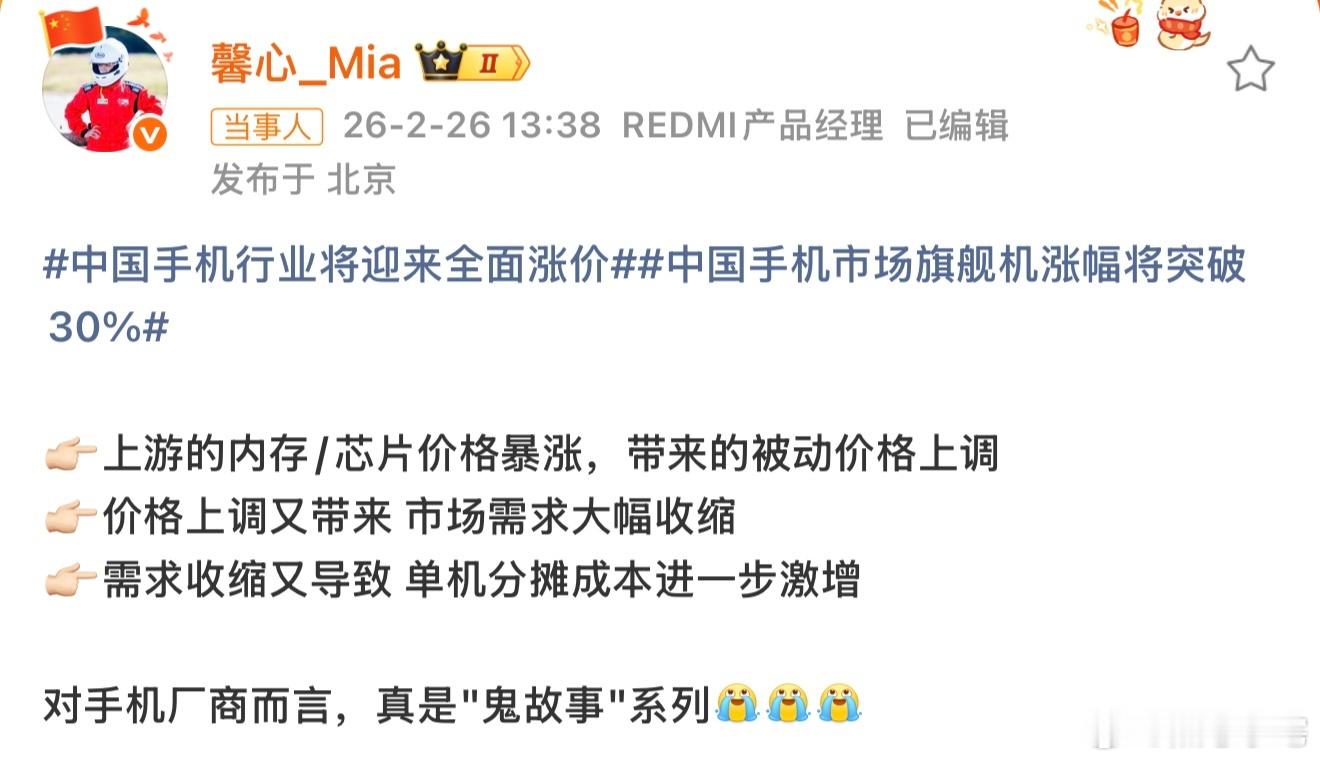 但这波涨价潮,厂商难,用户也难,谁都不好过。小米胡馨心回应手机行业全面涨价
