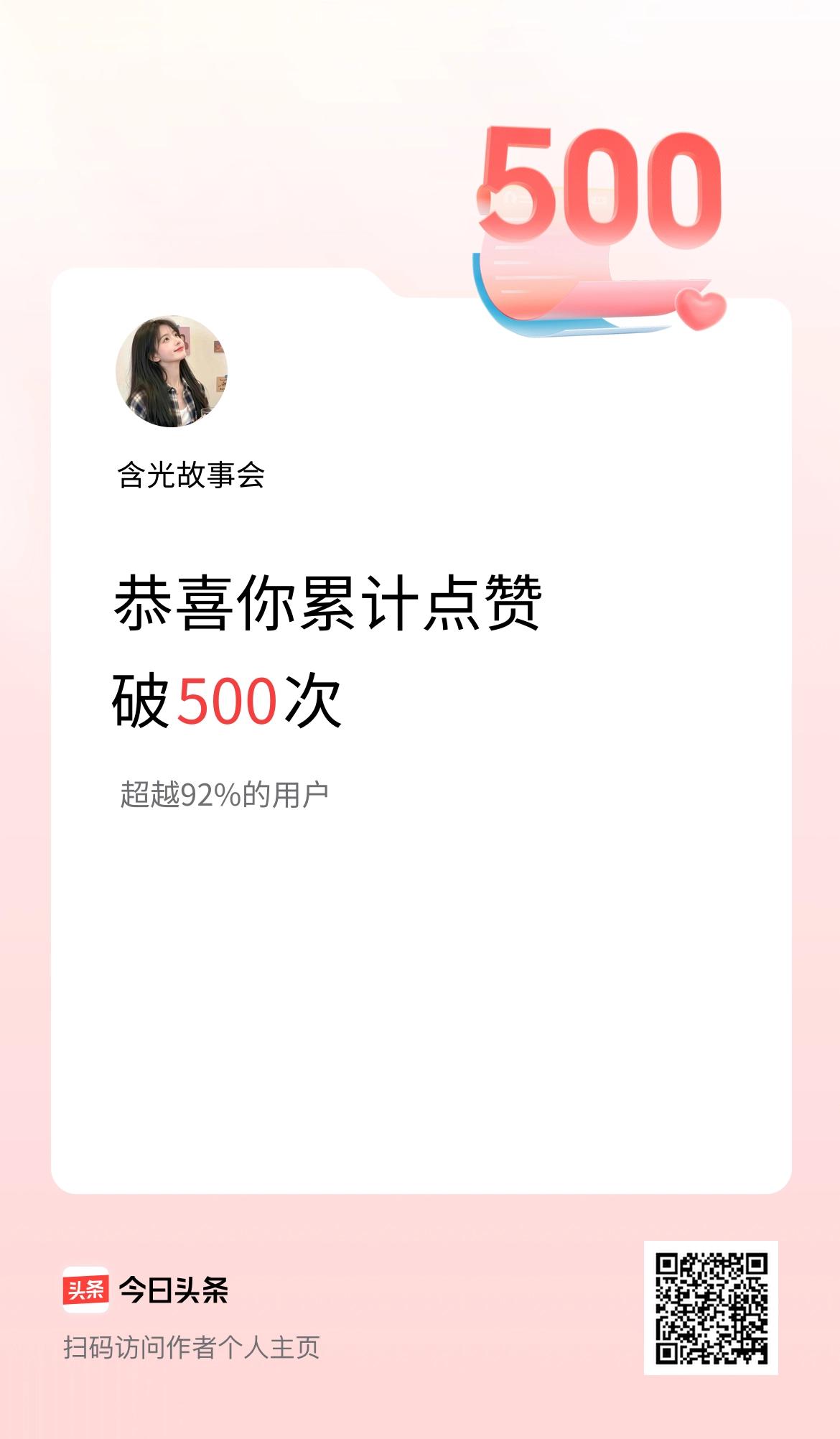 我在头条累计点赞破500啦!