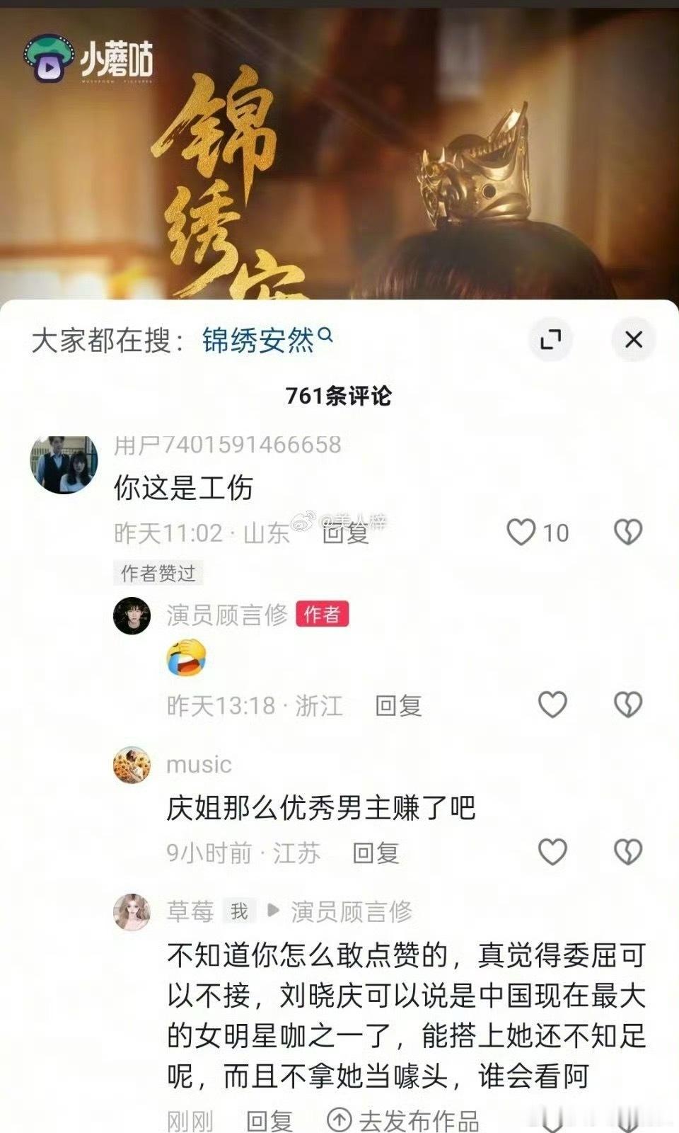 男演员点赞和刘晓庆搭戏是工伤短剧男心里有点自知之明吧,不是搭上刘晓庆谁认识你?且不说短剧男演员多少污糟没爆出来,想想自己干不干净有没有资格和刘晓庆搭戏