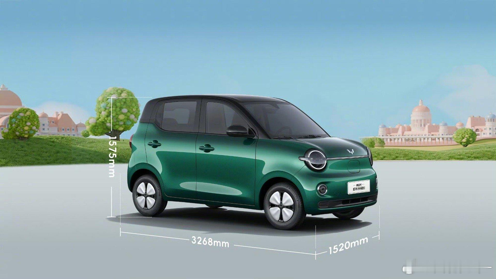 汽车 全新五菱宏光MINI EV,尺寸变大。五菱做的微型车越来越可爱,绿色车漆好看。五菱宏光miniev