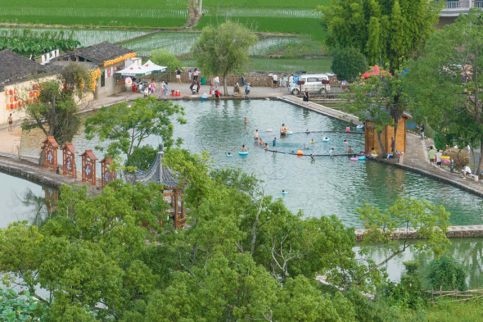 暖汤慰风尘,全球稀有的含锗温泉氤氲升腾,在溶洞秘境中泡汤,看钟乳石与薄雾相映,卸下疲惫,尽享春日疗愈。青山叠翠,九龙湖碧波荡漾,古村炊烟袅袅,客家烟火温柔可亲,茶香与花香漫过街巷,藏着最治愈的人间烟火。