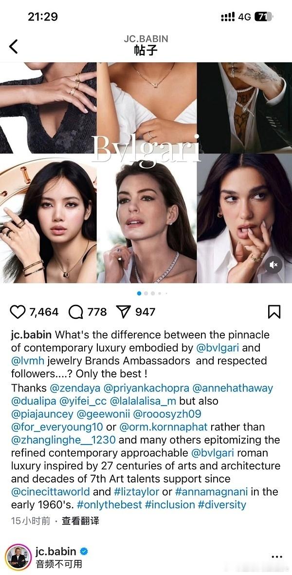 宝格丽总裁更新代言人名单艾特了所有人 唯独忘记艾特吴磊了