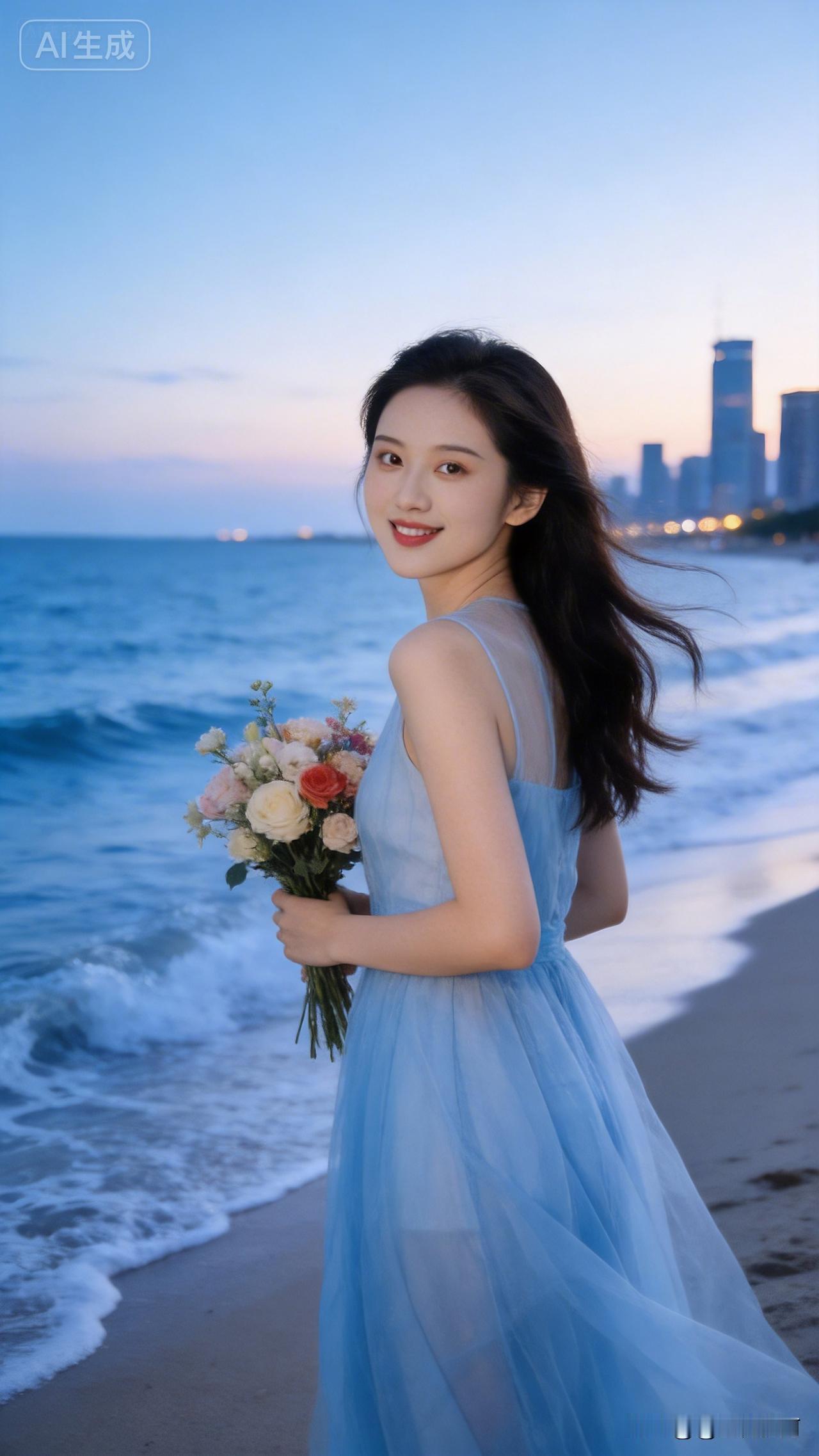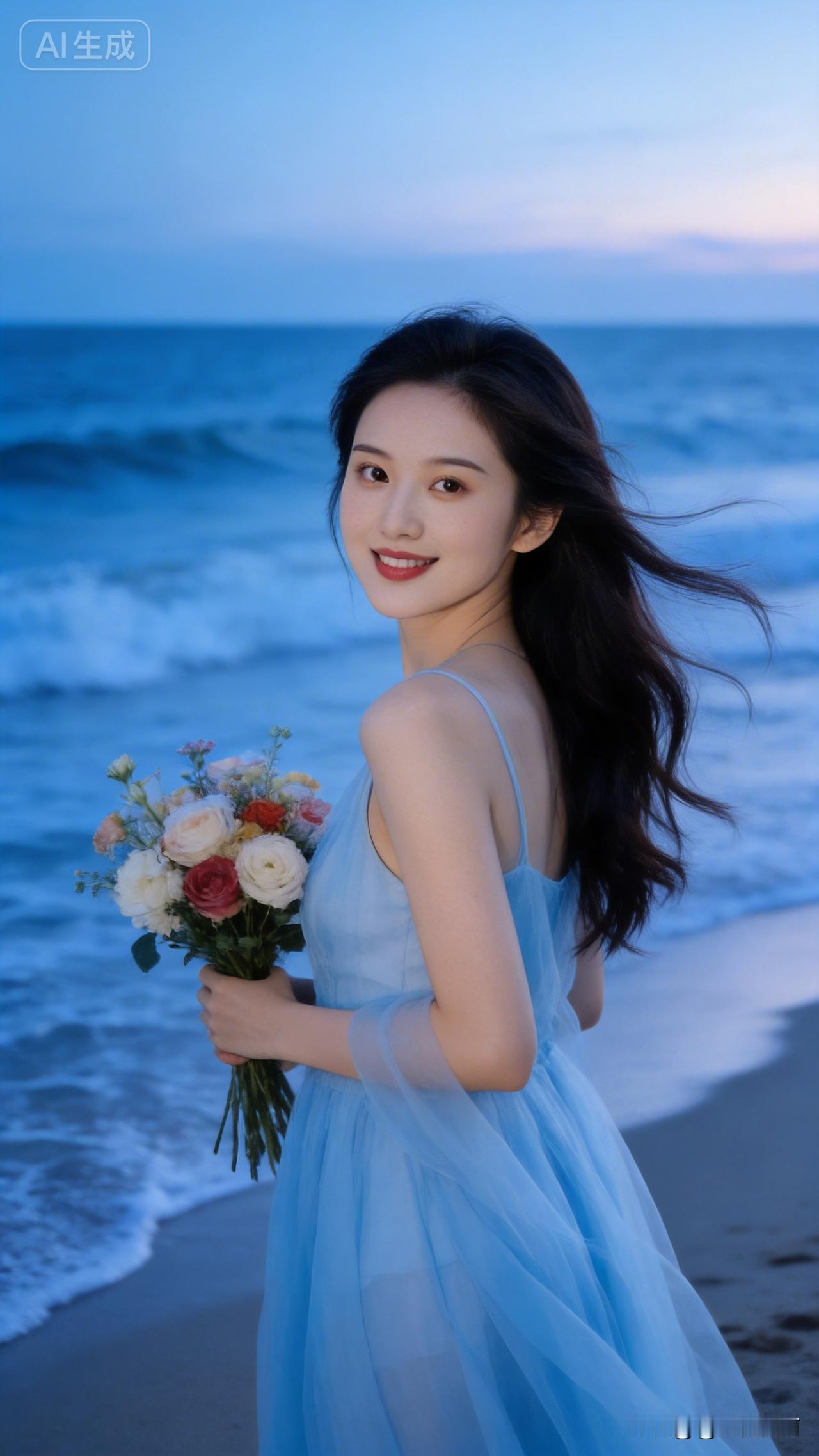 海边蓝莎美女