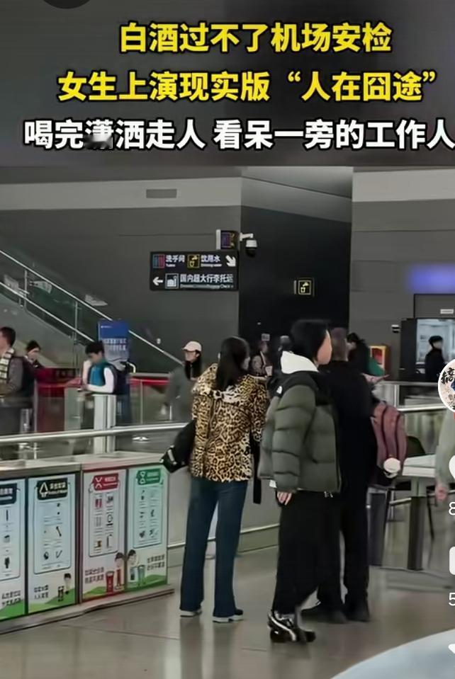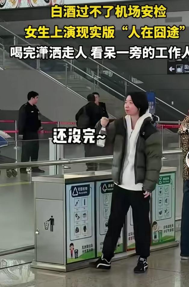 女孩带着白酒,机场安检不让过。那可是55元一瓶的汾酒哦,丢了舍不得。 不让过?那就喝完它。 女孩仰头举起酒瓶,咕噜咕噜的就喝了下去。 一瓶酒喝完,她连嘴也不抹,就潇潇洒洒的朝机场走去。 真是女中酒仙,豪气豪爽。 网友赞曰,豪饮天地间,千杯若等闲,有酒今朝醉,何须问明天。