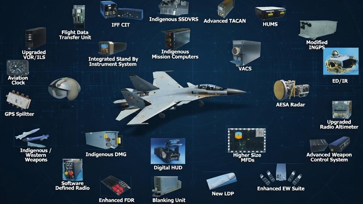 根据印度国产版"超级苏霍伊"升级项目,印度斯坦航空有限公司将与印度国防研究与发展组织合作领导现代化工作。其核心将是换装印度国产Virupaksha有源相控阵雷达和升级的航空电子设备套件。升级后的战机将能携带布拉莫斯-ER巡航导弹、印度国产"阿斯特拉"超视距空对空导弹和“鲁德拉姆”反辐射导弹。