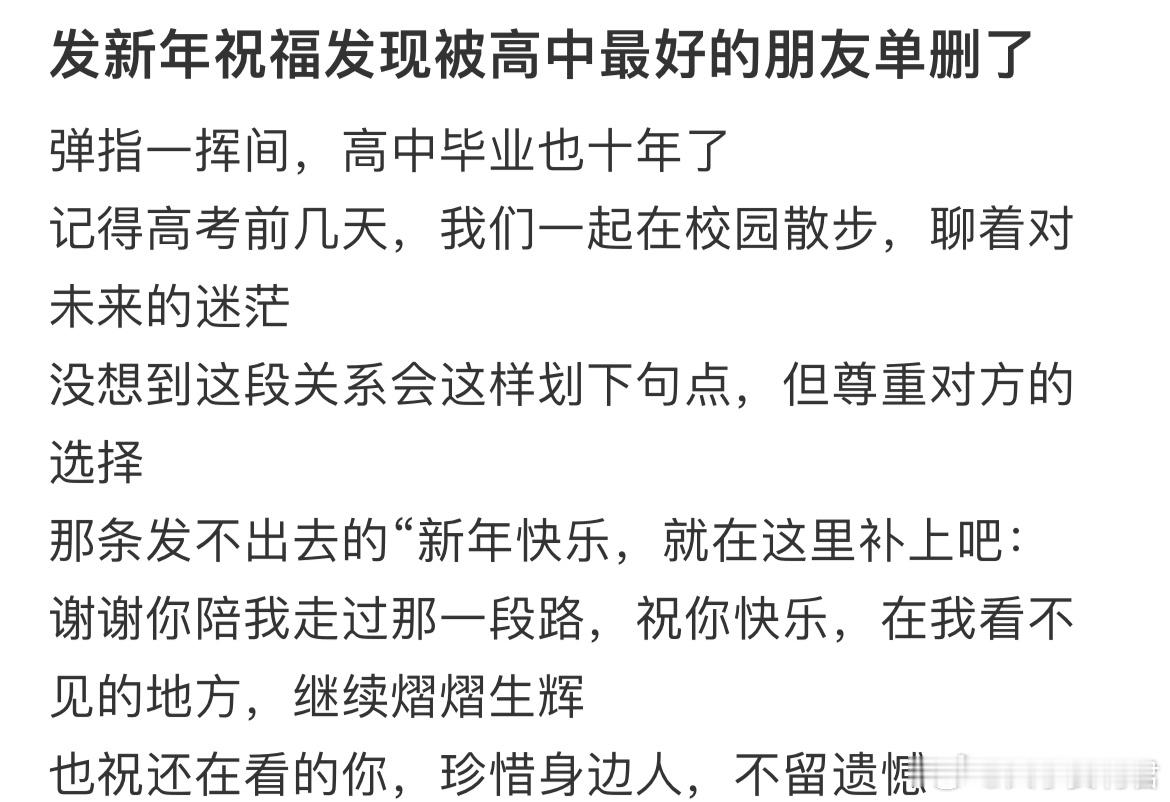 发新年祝福发现被高中最好的朋友单删了