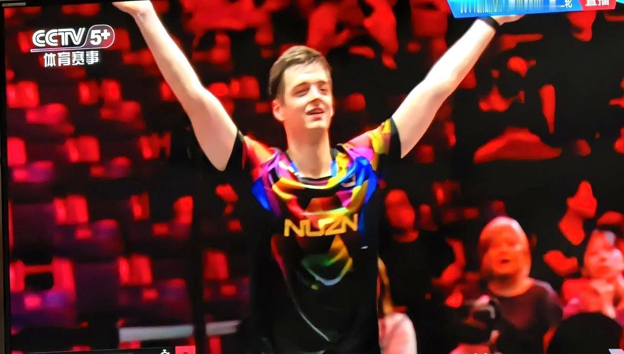 0-2落后摔拍,擦边球绝杀邱党! 你盯着屏幕攥紧拳头,擦边球落地的瞬间,邱党直挺挺站在原地,连球拍都没举起来。 穿花衣服的是法国选手A·勒布伦,也就是球迷说的眼镜哥。前两局被邱党压着打,摔拍砸球被裁判罚了两次。 换做是你,0-2落后还被罚分,这口气你咽得下去吗?他偏不,每球都往台角砸,嘶吼着把比分扳成2-2。 决胜局最后一分,他发球擦网后擦边落地,邱党扑过去够,指尖刚碰到球,球已经滚出界外。 你翻他的比赛记录,去年法国锦标赛输给弟弟,他怒捶球桌把手砸伤退赛,砸坏屏幕、撕球衣的事也干过。 邱党是德国华裔名将,父亲是前国手邱建新,直板打法稳得像一堵墙,世界排名进过前十。 中国球迷调侃他,回去得找樊振东取取经,关键分怎么防这种疯劲儿的对手。 冲劲能掀翻经验,运气只等拼到最后的人。