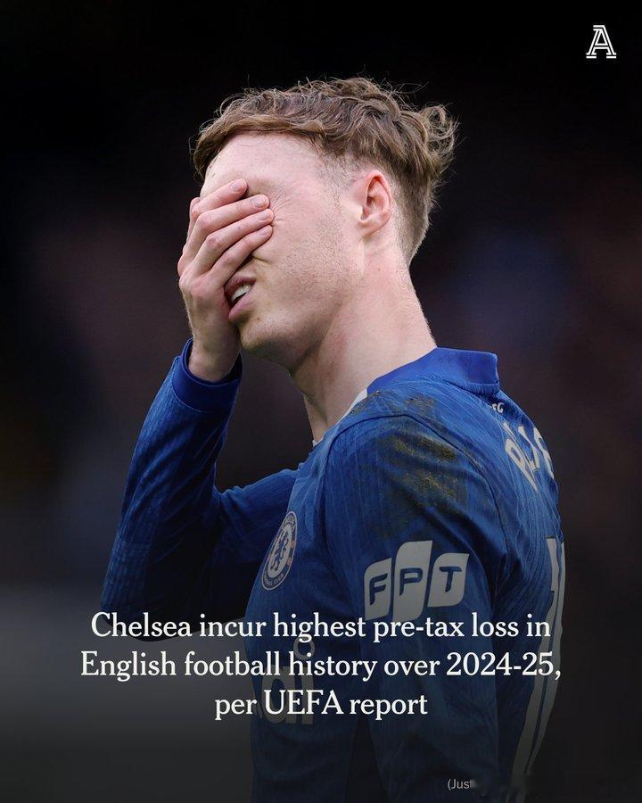 TA:欧足联最新财报显示,切尔西在2024-25赛季税前亏损高达 4.07亿欧元,创下英格兰足球历史最高税前亏损纪录😮