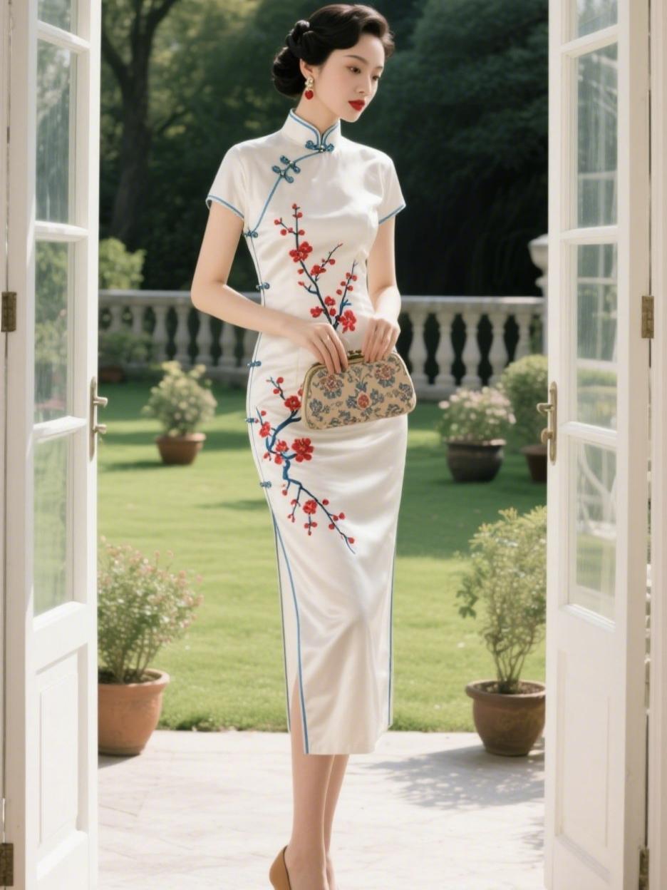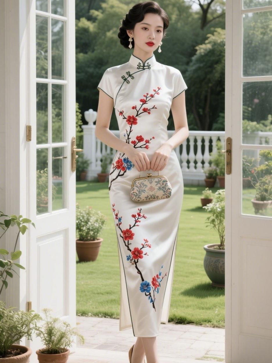 《旧梦旗袍,惊艳时光》 一匹素绫裁尽流年的温柔 盘扣凝香,锁住半世清愁 斜襟