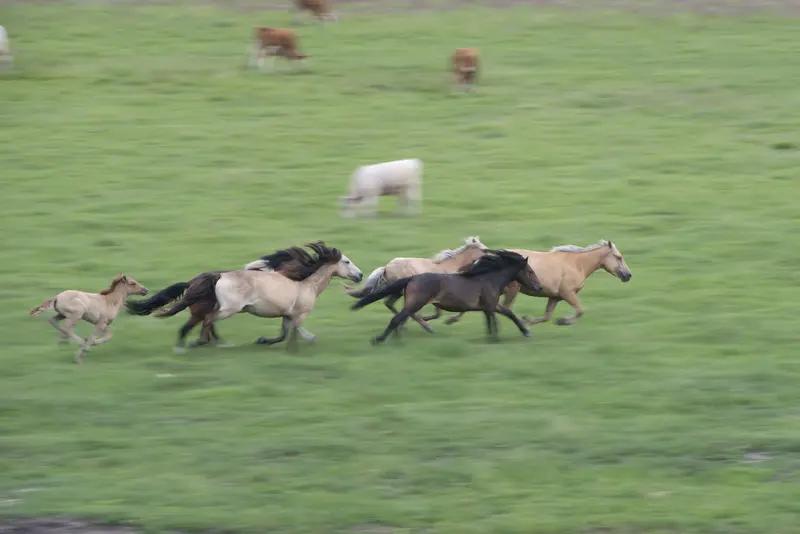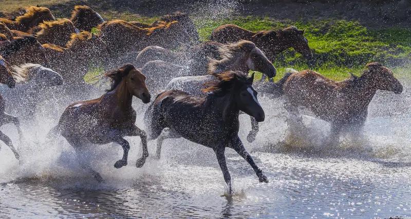 上联:紫骝越松溪,踏碎荆棘逐晓日; 下联:赤兔奔原野,追风逐梦腾晚霞。