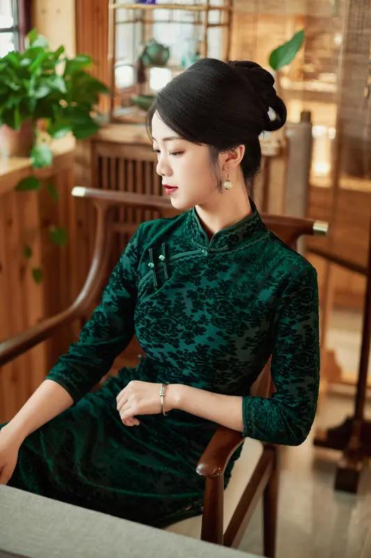 想穿旗袍又怕老气?有办法! 对于40+的女性,选重磅真丝或提花缎面,低饱和莫兰迪色的旗袍是首选。这种面料哑光柔光、垂坠感好,能包容皮肤状态,藏住腰腹肉肉。保留立领与盘扣但简化装饰,袖型与开叉控制到位,再在配饰和发型上做减法,鞋履选同色系拉长比例,通勤、聚会穿都优雅。 要是喜欢华丽风,试试黑金凤凰旗袍。黑底缎面配金线绣的凤凰,贵气冷艳。胸前镂空结合立领,高开衩拉长腿线,时尚又有东方韵味,电商平台爆款众多,定制款也很火。
