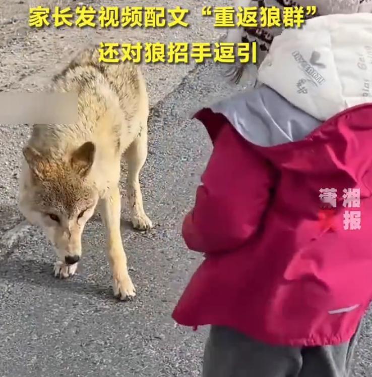 招猫逗狗,是说有些人的轻浮动作,会引来灾祸。而这个女人胆子大,竟去逗狼! 前不久,青海玉树一女子,给五岁的孩子拍“可可西里投喂狼”的视频。 这个女子让孩子近距离接触狼,并投喂火腿肠等食物。 投喂成功后,还露出开心表情,并教孩子用手比“耶”。 女子随后还对狼发出招手逗引的动作,双方距离近到出现危险,也来不及躲避的地步! 这样的母亲,这样年轻的母亲,还真就有点不识好歹啊……