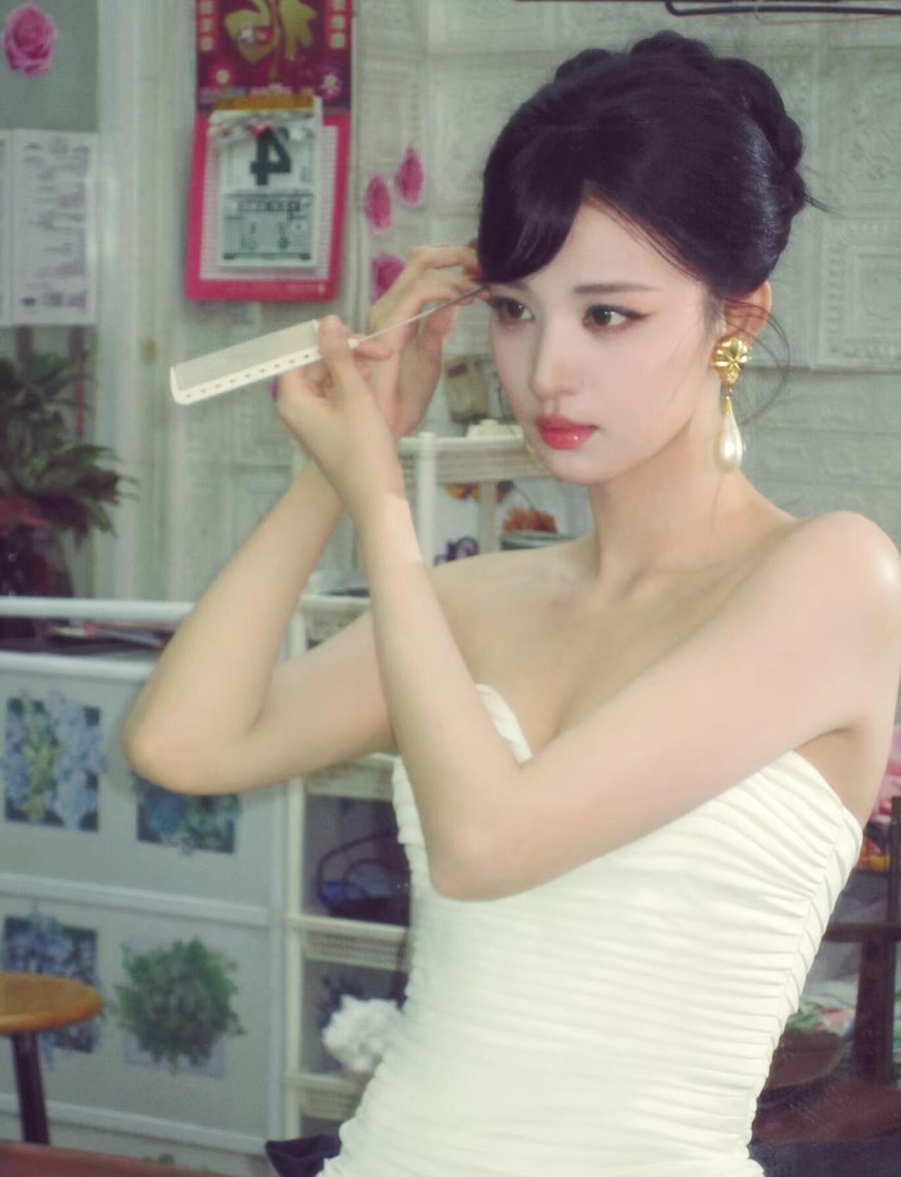 王楚然 《多面镜》 紫雾里,水晶垂成星子的泪 你低头,把光折成碎影 像把心事,藏进发间的流苏 白裙裹着旧时光 梳子划过发梢,也划过 墙上褪色的“福”字 和日历上,被圈住的某一天 椰林把风揉成碎浪 蓝裙漫过草叶,你笑时 花在发间轻颤 像把夏天,别在了耳后 粉裙在木色里沉下去 肘弯抵着桌面,眼波漫过杯沿 像在等一句未说出口的话 又像,早已把答案藏进了唇间 最后是海,蓝裙浸在暮色里 浪声漫过条纹躺椅 你望向镜头,像望向 无数个自己 在不同的光里,反复盛开