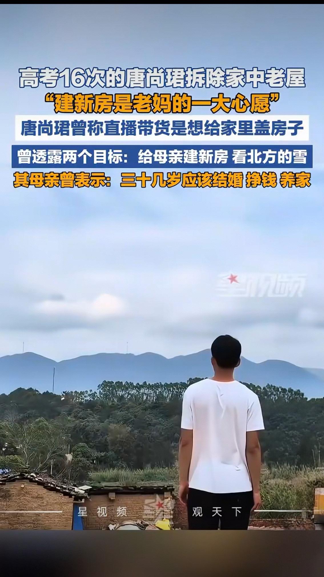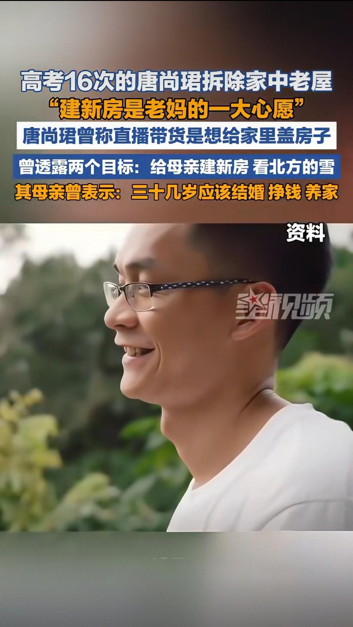 现实版的“孔乙己” 挖机轰鸣,尘土扬起,住了三十多年的老屋轰然倒塌。唐尚珺站在废墟前红了眼,这一拆,拆的是半生执念,圆的是母亲一生心愿。谁能想到,那个被骂了十几年“高考钉子户”的男人,终于用自己的方式,活成了母亲的骄傲。 曾几何时,他是全网争议的焦点。16次高考,三十几岁仍在校园,不结婚、不养家,活成了村里人眼中的“异类”。母亲那句“三十几岁应该结婚挣钱养家”,藏着多少无奈与期盼,也戳中了无数普通人的心声。在世俗眼里,他偏执、固执,浪费了最好的年华,辜负了家人的期待。 可没人知道,他心里藏着两个最朴素的愿望:给母亲建新房,带她看北方的雪。直播带货不是哗众取宠,是他扛起家庭责任的开始;那些熬夜选品、耐心讲解的日夜,都是他为孝心攒下的底气。他不再执着于一纸名校通知书,而是明白了,真正的成功,是让生养自己的人安享晚年。 老屋倒了,新楼将起。这不仅是一栋房子的更迭,更是一个男人的成长与救赎。他用16年读懂了梦想,又用行动诠释了孝道。有人说他醒悟太晚,有人赞他孝心可鉴。 人生从没有标准答案,有人年少成名,有人大器晚成。唐尚珺的选择,或许不完美,却足够真诚。拆掉的是过去,建起的是未来。 你觉得,16次高考换一次尽孝,值得吗?他该继续追梦,还是安稳养家?评论区说说你的看法!追梦