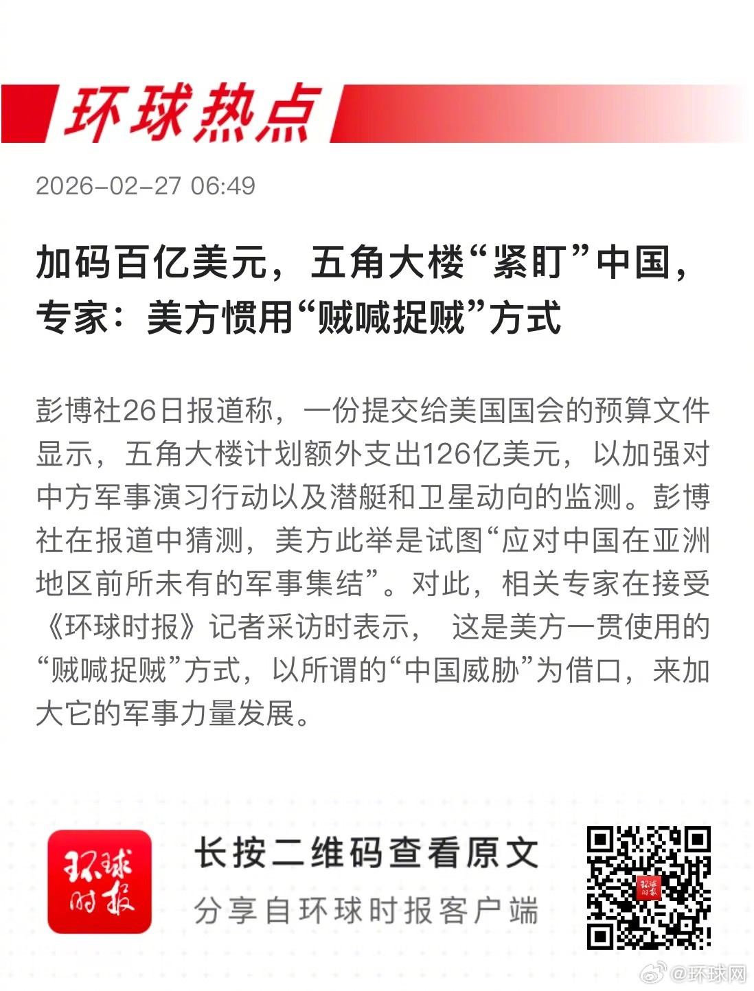 ▲ #五角大楼加码百亿美元紧盯中国#