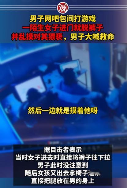 离谱了,湖南岳阳,一小伙在网吧包间打游戏,不料这期间就进来一位陌生女子,径直走到小伙面前把裤子脱了。当时就吓得小伙连忙起身躲避,但女子却一直缠着小伙不放,并对其动手动脚的进行猥亵,直到网吧工作人员上前制止后,女子才停止了她的不当行为。 谁能料到,安安稳稳在网吧包间里打会儿游戏,都能撞上离谱到出圈的突发状况,近日在湖南岳阳城区一家通宵营业的网吧内,就上演了一件让无数网友看完直呼后怕的奇葩事。 事发在凌晨时分,岳阳街头的大部分商铺早已熄灯打烊,主干道上行人稀少,可这家开在城区商圈旁的网吧依旧灯火通明。 不少年轻人选择在这里通宵消遣娱乐,键盘噼里啪啦的敲击声、游戏里的技能音效交织在一起,凑成了深夜网吧独有的热闹氛围。 这名受害男子当时独自占用着一间双人电竞包间,他的同行伙伴临时下楼购买饮品,包间的玻璃门只是轻轻虚掩,并没有上锁。 男子戴着降噪耳机,全身心扎进网络游戏的对局里,既没留意到门外的异常动静,也没闻到逐渐飘过来的浓重酒精味,对即将到来的骚扰毫无察觉。 没隔几分钟,包间的玻璃门被人猛地推开,男子下意识抬头查看,还以为是同伴买水回来,可映入眼帘的却是一名完全陌生的女子。 女子没有丝毫迟疑,直接快步走到男子身前,接下来的举动直接让男子大脑瞬间空白 —— 女子当着男子的面,径直将自己的裤子褪到膝盖位置,毫无顾忌的荒唐行为,让男子当场僵在电竞椅上,整个人都吓呆了。 还没等男子缓过神起身躲避,女子直接拉过身旁的塑料椅,紧紧贴着男子的电竞椅坐下,随即将一条腿直接搭在男子的大腿上。 开始往男子的身上乱摸,他慌忙想要站起身躲开,可女子却死死拽着他的衣物不放,一直黏在他身边持续实施猥亵骚扰。 无论男子怎么用力挣扎都摆脱不开,情急之下,男子只能扯着嗓子大声呼喊救命,恐慌的呼救声在安静的网吧里格外刺耳。 包间外的多名上网顾客最先听到了动静,一开始大家都没往恶意骚扰上想,毕竟网吧里偶尔会有年轻情侣打打闹闹、亲昵拉扯的情况,众人都误以为两人是热恋中的男女朋友,只是在闹小矛盾耍脾气,所以一开始并没有人上前干预。 可随着男子的呼救声越来越急促,语气里满是害怕和无助,完全没有情侣嬉闹的轻松感,周边的顾客才猛然察觉事情不对劲,意识到这根本不是情侣间的玩闹,而是一方在对另一方实施强行骚扰。 网吧的值班工作人员起初也和现场顾客的想法一致,以为是年轻小情侣在包间里闹别扭,直到接连听到清晰又慌乱的救命呼喊,才发觉情况完全不对,立刻放下手头的登记工作,快步赶往涉事包间查看情况。 赶到现场后,工作人员一眼就看到女子正死死缠着男子,男子满脸惊恐拼命挣扎,当即确定这是恶意猥亵行为,立刻上前联手周边顾客一起将两人分开,强行制止了女子的不当举动,直到被众人拉开,女子才停下了持续的猥亵行为。 其实这类公共场所陌生人员酒后实施骚扰、猥亵的事件,并非单独个例。 据各地警方公开的处置案例统计,此前国内多个城市的网吧、地铁、商场、KTV 等公共休闲场所,都曾发生过类似的陌生异性无故骚扰他人的事件。 其中超七成涉事人员都处于酒后失控状态,做出违背他人意愿的肢体接触,这类行为不仅严重违背公序良俗,更是明确触犯了治安管理相关法律规定。 数据显示,公共场所发生的性骚扰、猥亵类警情中,娱乐休闲场所的占比虽不足一成,但一旦发生,会给受害人带来极大的心理恐慌,也会直接破坏公共场所的正常经营秩序。 摆脱女子的纠缠后,受害男子依旧浑身止不住发抖,惊魂未定的他第一时间拿出手机拨打报警电话,向警方详细说明自己在网吧包间内,遭遇陌生女子强行脱裤猥亵的完整经过。 当地警方接到报警后,迅速驱车赶往涉事网吧处置,现场调取了网吧的全程监控录像,固定了女子闯入包间、实施猥亵、众人制止的完整影像证据。 同时对受害男子、网吧工作人员以及现场目击者逐一做了详细笔录调查,随后将涉事女子依法带回派出所,做进一步的问询与处理。 涉事网吧的负责人也表示,后续会加强对包间等私密区域的定时巡查力度,完善场所内的安全管理与人员管控措施,避免此类荒唐又恶劣的骚扰事件再次发生。 即便在看似安全的公共场所,也要时刻保持自我保护意识,遇到此类违背意愿的不法侵害时,一定要及时大声呼救并报警,用合法方式维护自身权益。 对于这件事,您有什么想说的吗?欢迎评论区留言讨论。 信源:观察者网2026-02-26——《男子网吧包间打游戏,一陌生女子进门就脱裤子并乱摸对其猥亵,男子大喊救命》