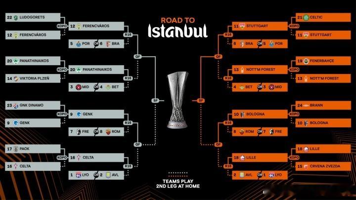欧联淘汰附加赛对阵结束,16强球队全部确定⬇️