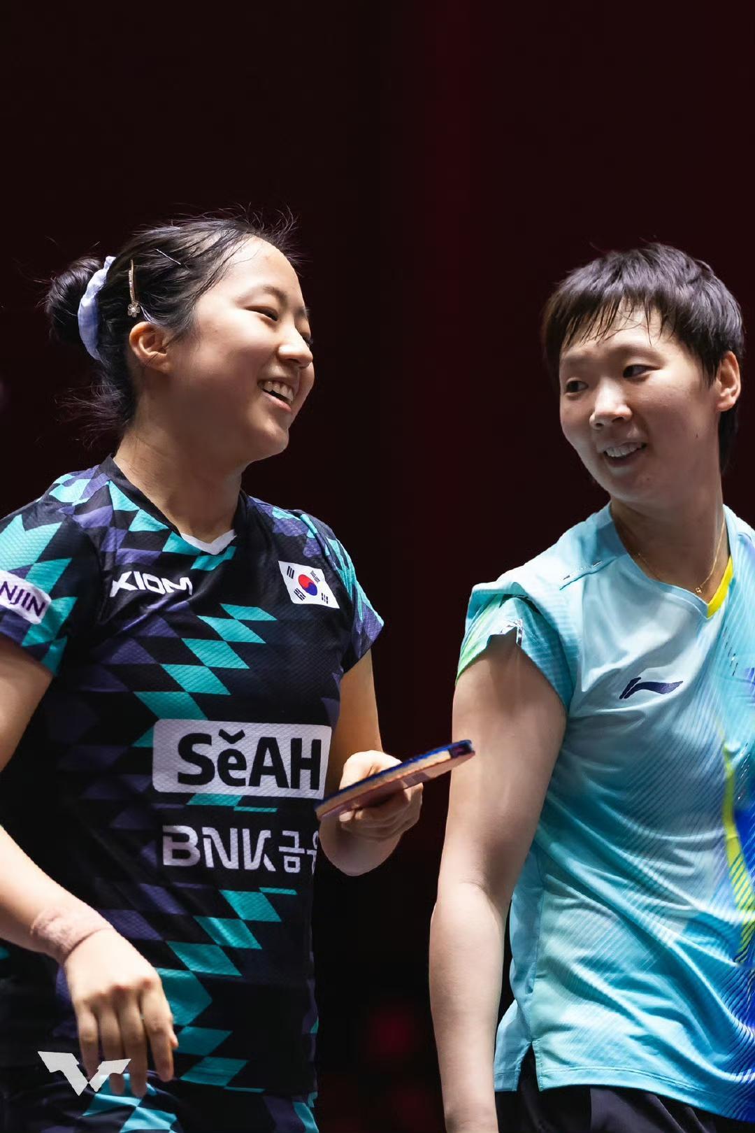 谁不羡慕王曼昱和申裕斌两个小姐妹之间的友谊呀!是站在乒乓球台两侧代表各自国家,拼的火花四溅的竞技体育运动员,也是私下会撒娇的叫王曼昱“姐姐”的申裕斌小甜妹。 申裕斌这场比赛,场上打的近乎疯狂的渴望赢王曼昱,比赛一结束,小姐妹又恢复牵着小手,互相称赞对方打的好的友好模式!