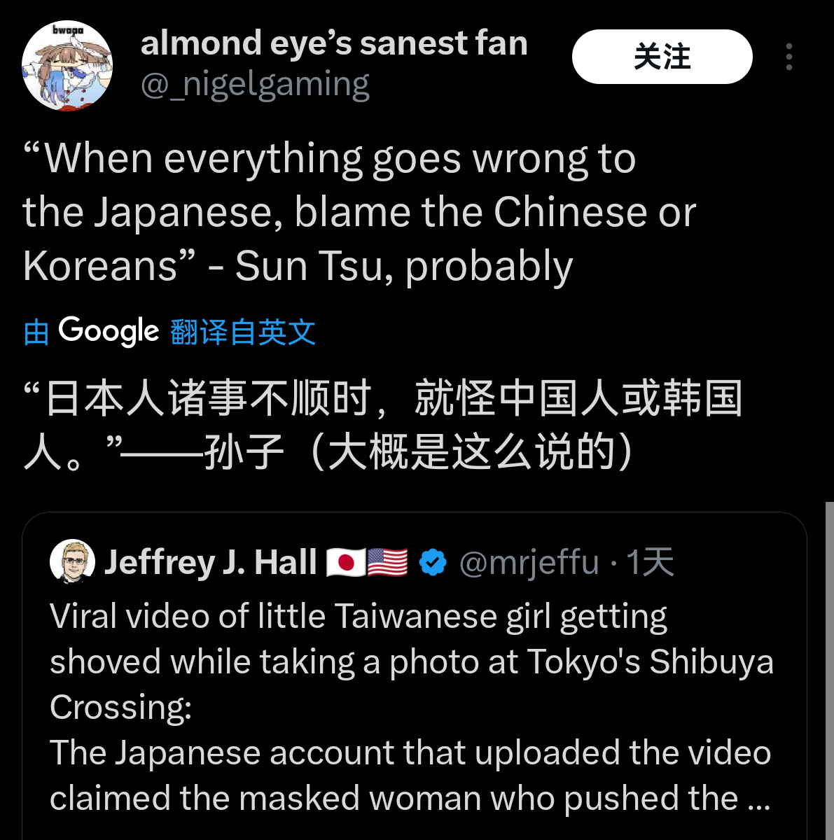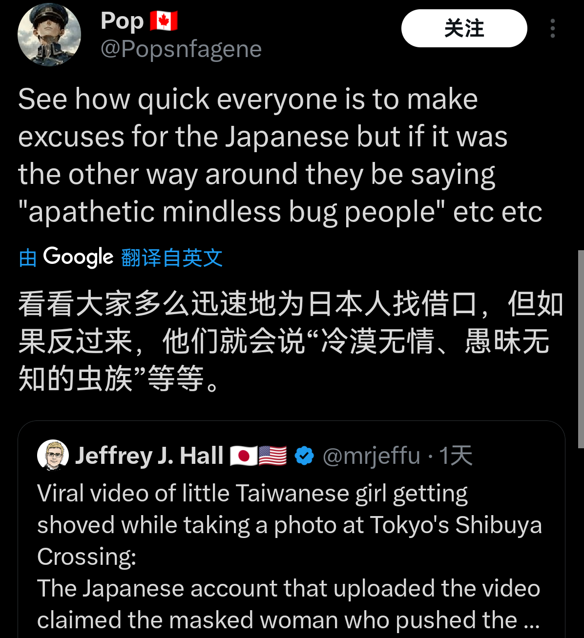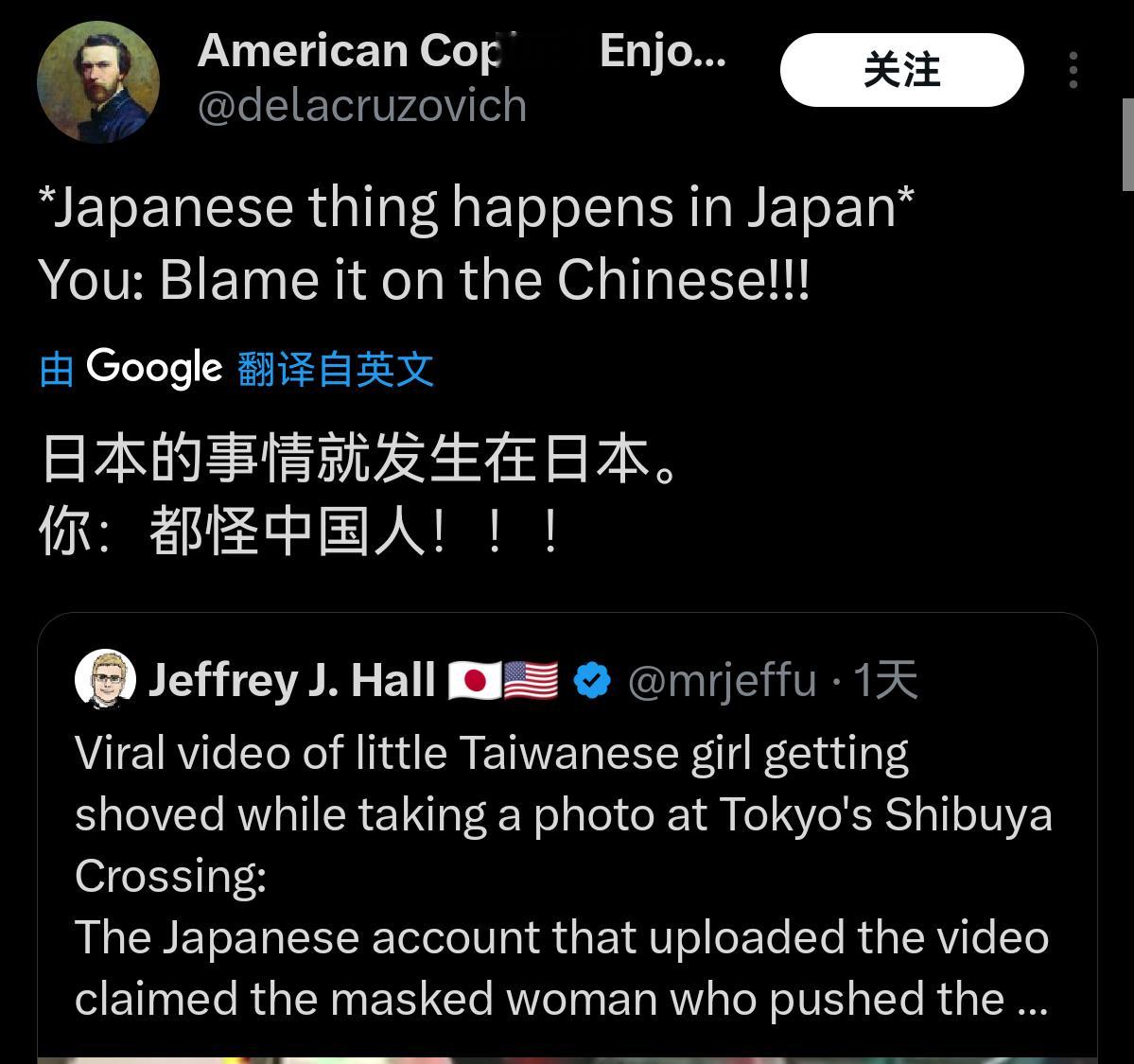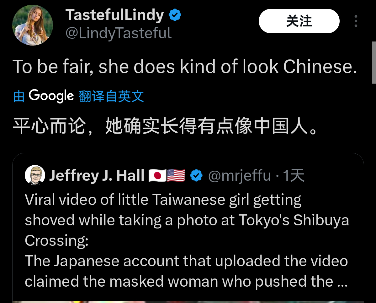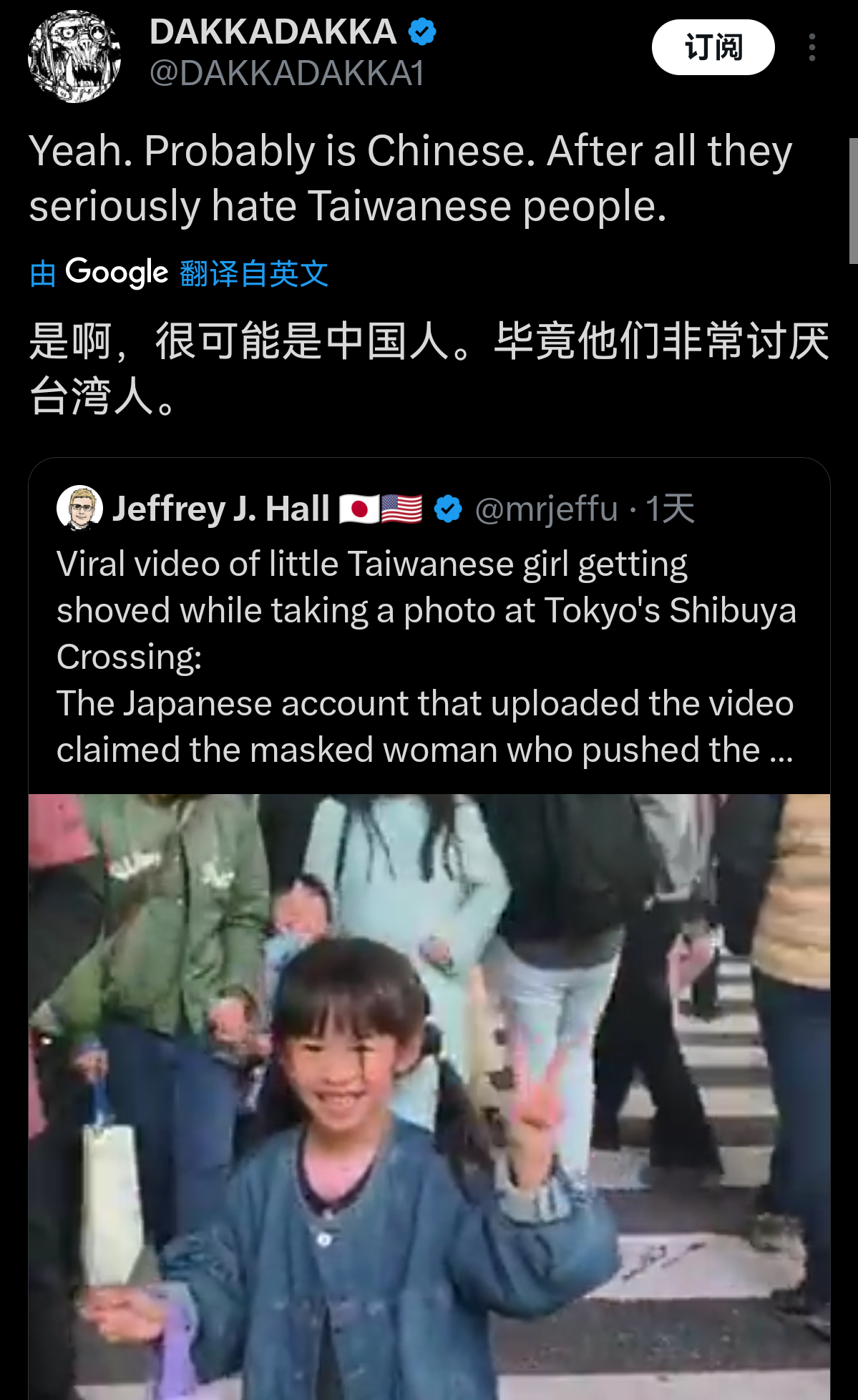 日本人造谣东京涩谷撞击台湾女童的蓝衣女子是中国大陆人,被多国自媒体转发……